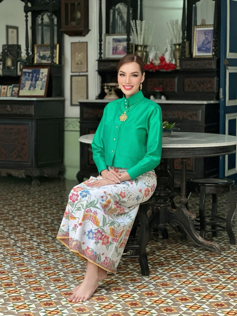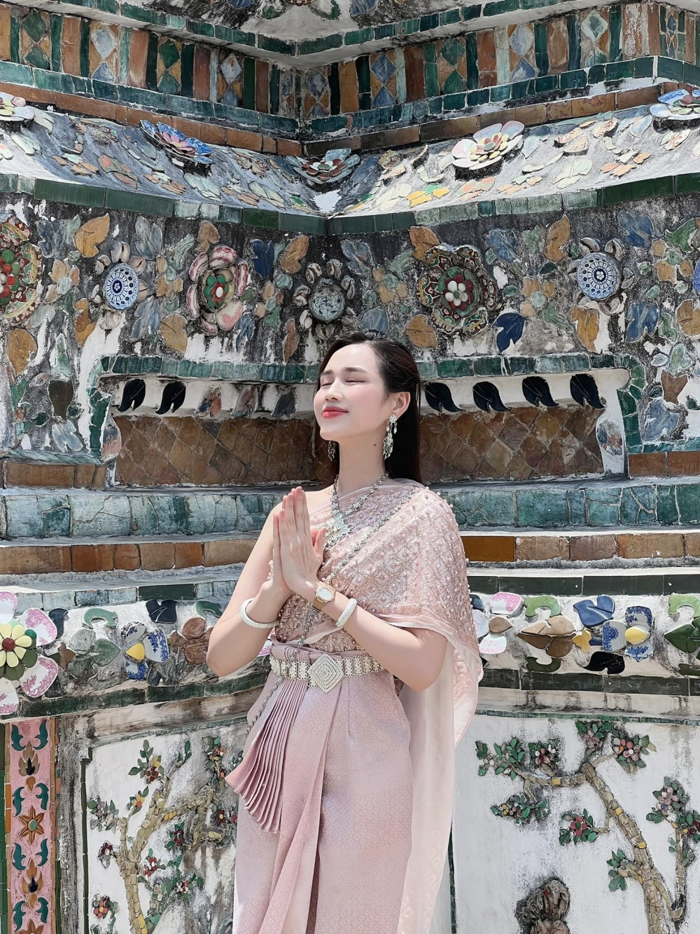 Giành danh hiệu Miss Grand International 2021, Hoa hậu Thùy Tiên có rất nhiều thời gian hoạt động tại Thái Lan. Nàng hậu cũng là người đẹp diện trang phục truyền thống Thái Lan nhiều nhất showbiz Việt.