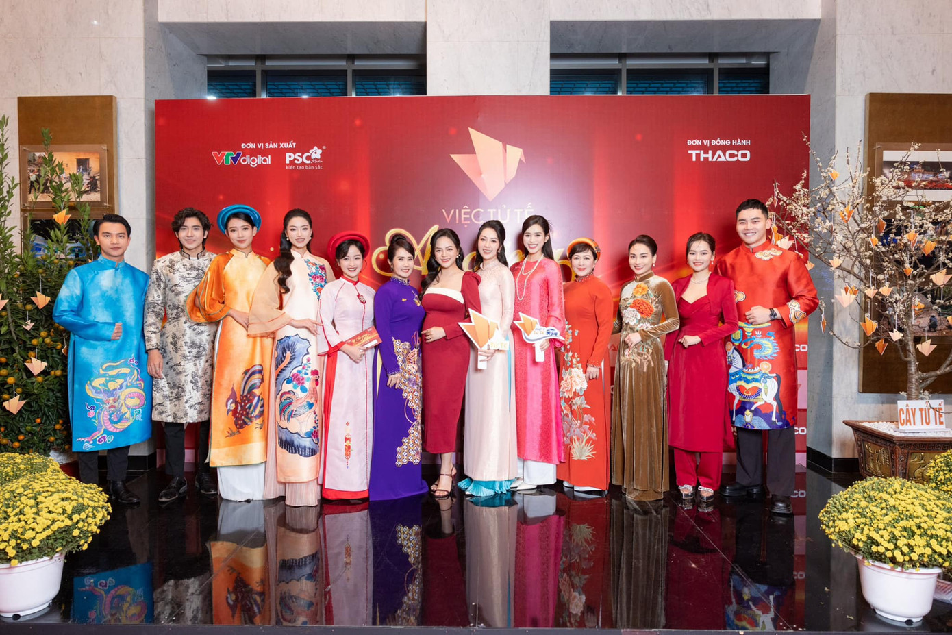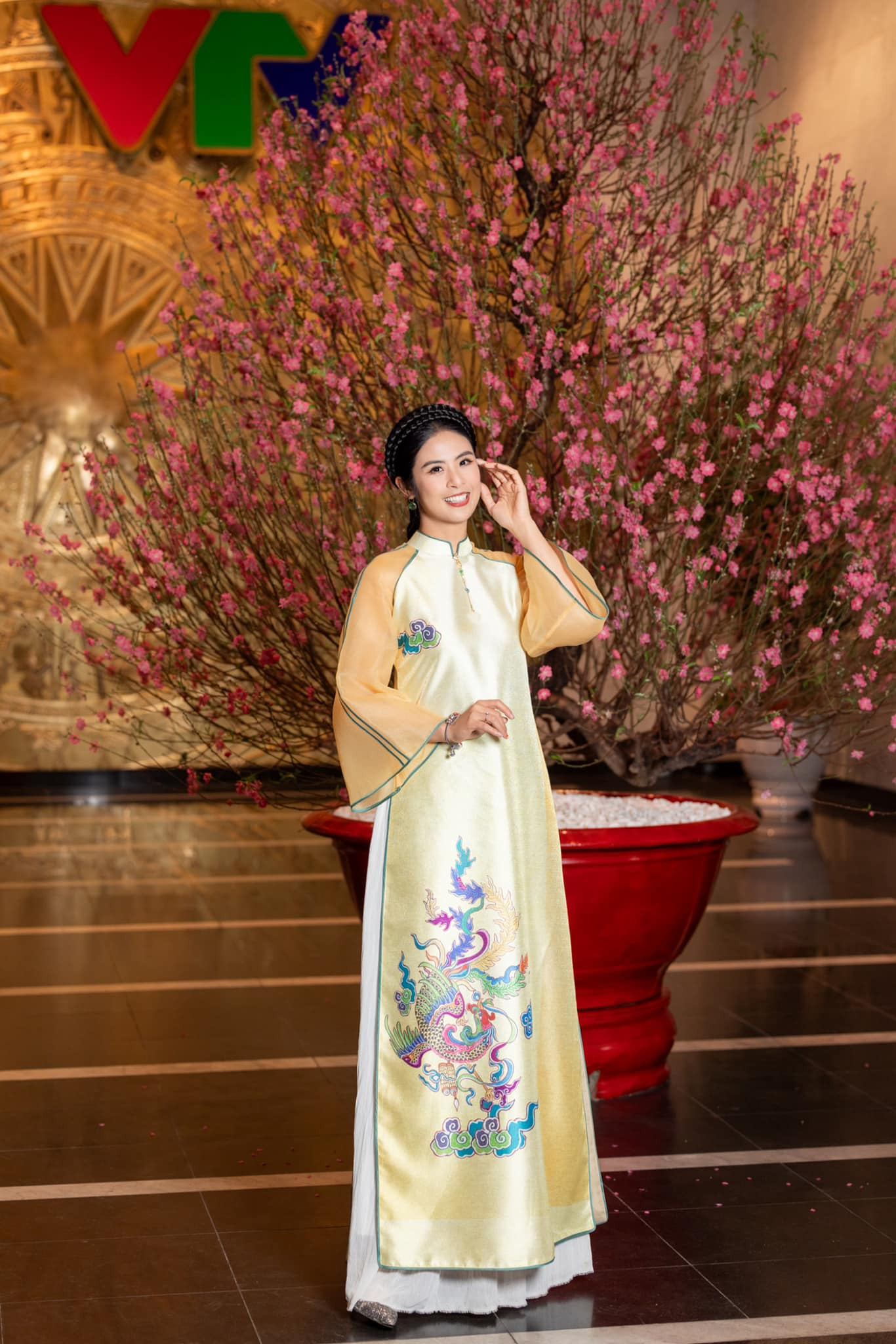 Hoa hậu Ngọc Hân cũng là người chuẩn bị toàn bộ trang phục áo dài cho dàn nghệ sĩ tham gia chương trình này. Loạt áo dài Tết của người đẹp năm nào cũng nhận được sự ủng hộ của rất nhiều sao Việt.