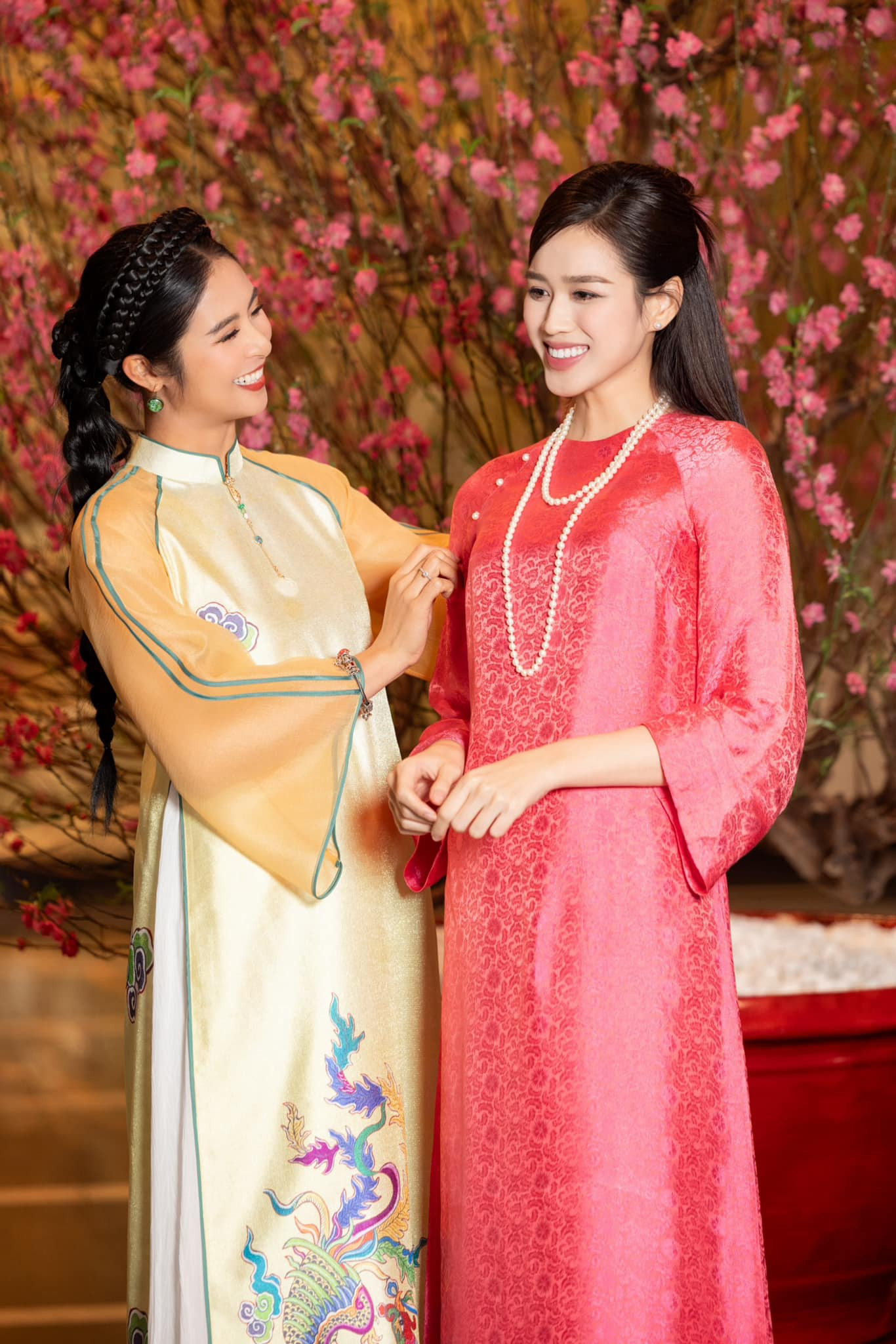 Hoa hậu Việt Nam 2010 Đặng Thị Ngọc Hân bên cạnh đàn em Hoa hậu Việt Nam 2020 Đỗ Thị Hà. Mặc dù đăng quang cách nhau 10 năm, nhưng hai nàng hậu dường như không có sự chênh lệch.
