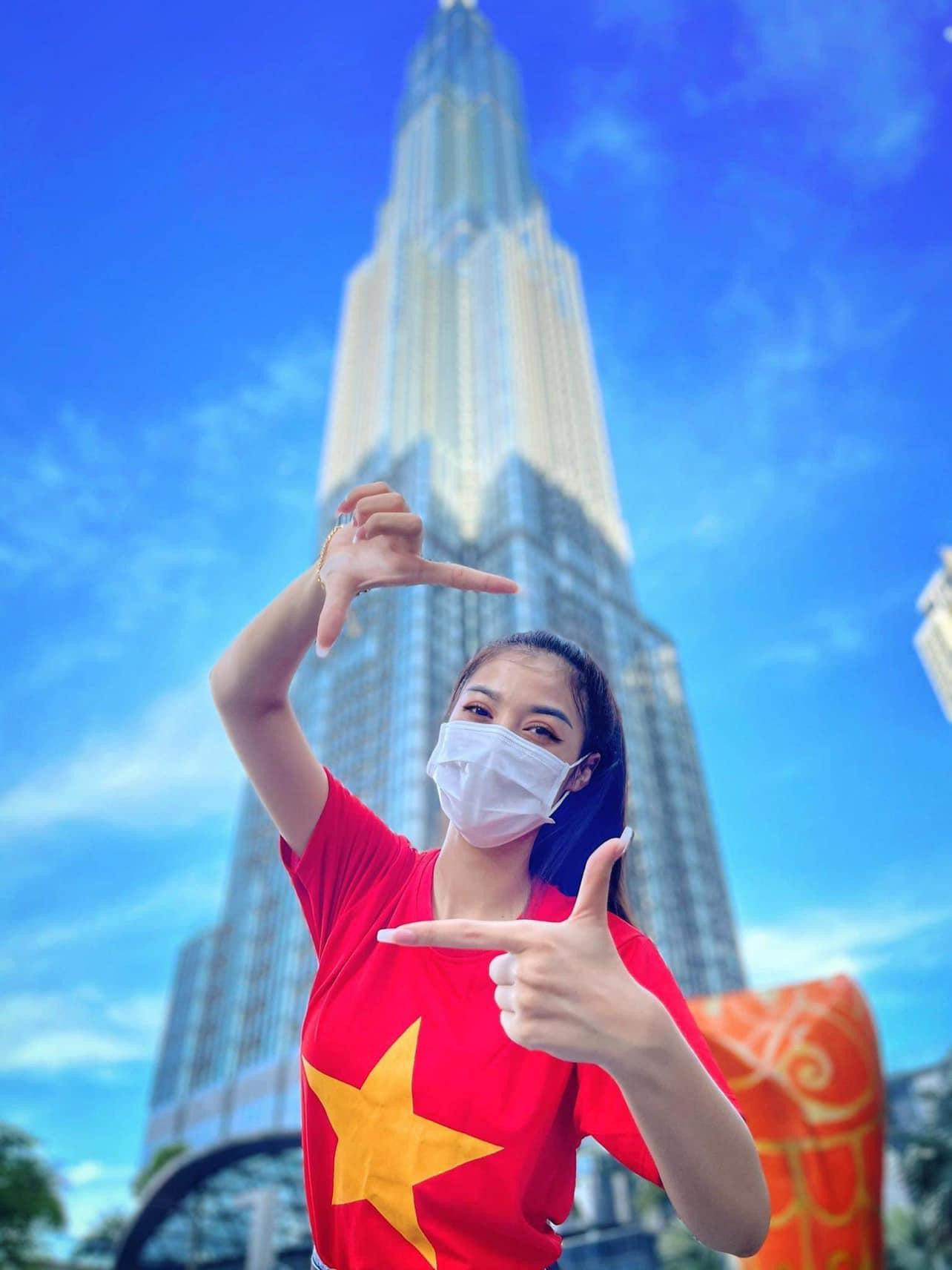 Trên trang cá nhân, cô mặc áo cờ đỏ sao vàng, đeo khẩu trang phòng dịch COVID-19 và gửi lời kêu gọi: "Việt Nam nghiêm túc thực hiện phòng chống dịch COVID-19. Thực hiện bầu cử theo đúng quyền và nghĩa vụ của công dân".