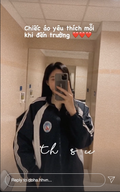 Tiếp tục chuỗi ngày quay trở lại trường học, Hoa hậu Đỗ Thị Hà vô cùng chăm chỉ lên giảng đường mỗi ngày. Cô cũng ghi điểm với sự hoà đồng, giản dị khi mặc áo đồng phục đơn giản tới trường. Người đẹp còn cho biết đây chính là chiếc áo yêu thích của cô mỗi khi đến trường.