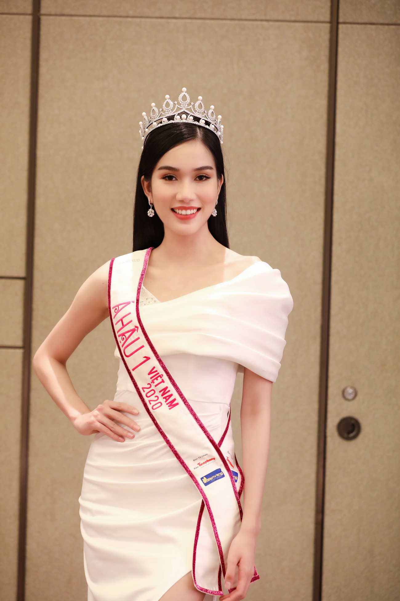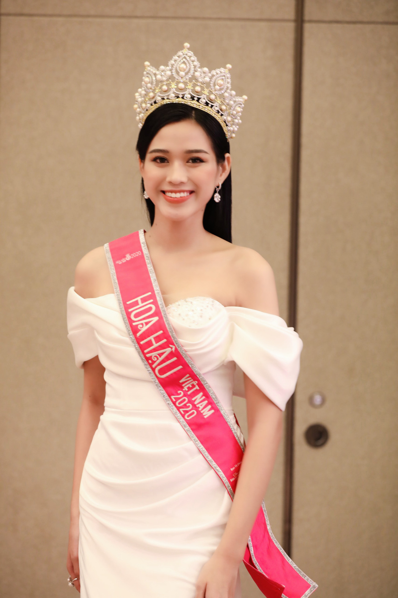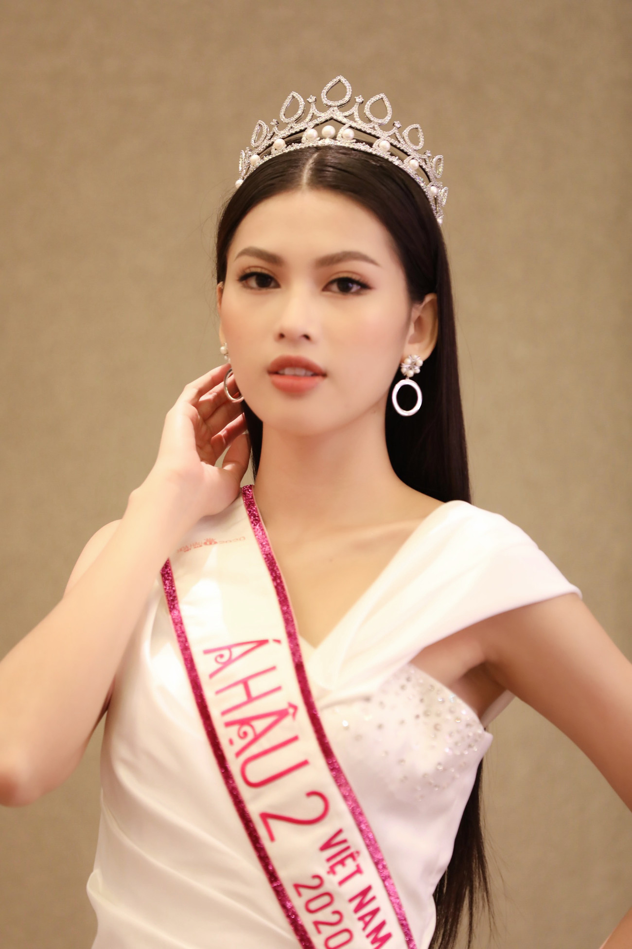 Đây là lần đầu tiên xuất hiện trước báo giới sau khi đăng quang của top 3 HHVN 2020.