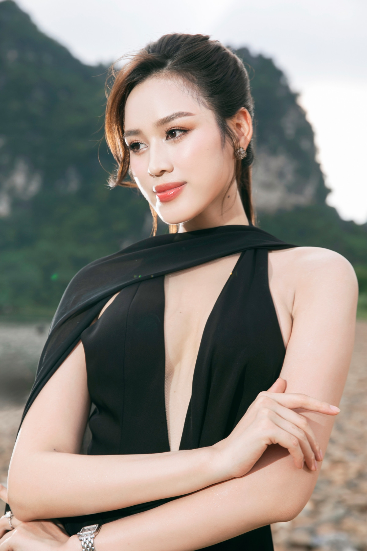 Người đẹp diện thiết kế dạ hội màu đen, cắt xẻ khéo léo, khoe trọn nhan sắc đỉnh cao và đôi chân dài trứ danh. Mặc dù thiết kế không quá cầu kỳ, nhưng lại nhận được phản hồi vô cùng tích cực từ fan sắc đẹp.