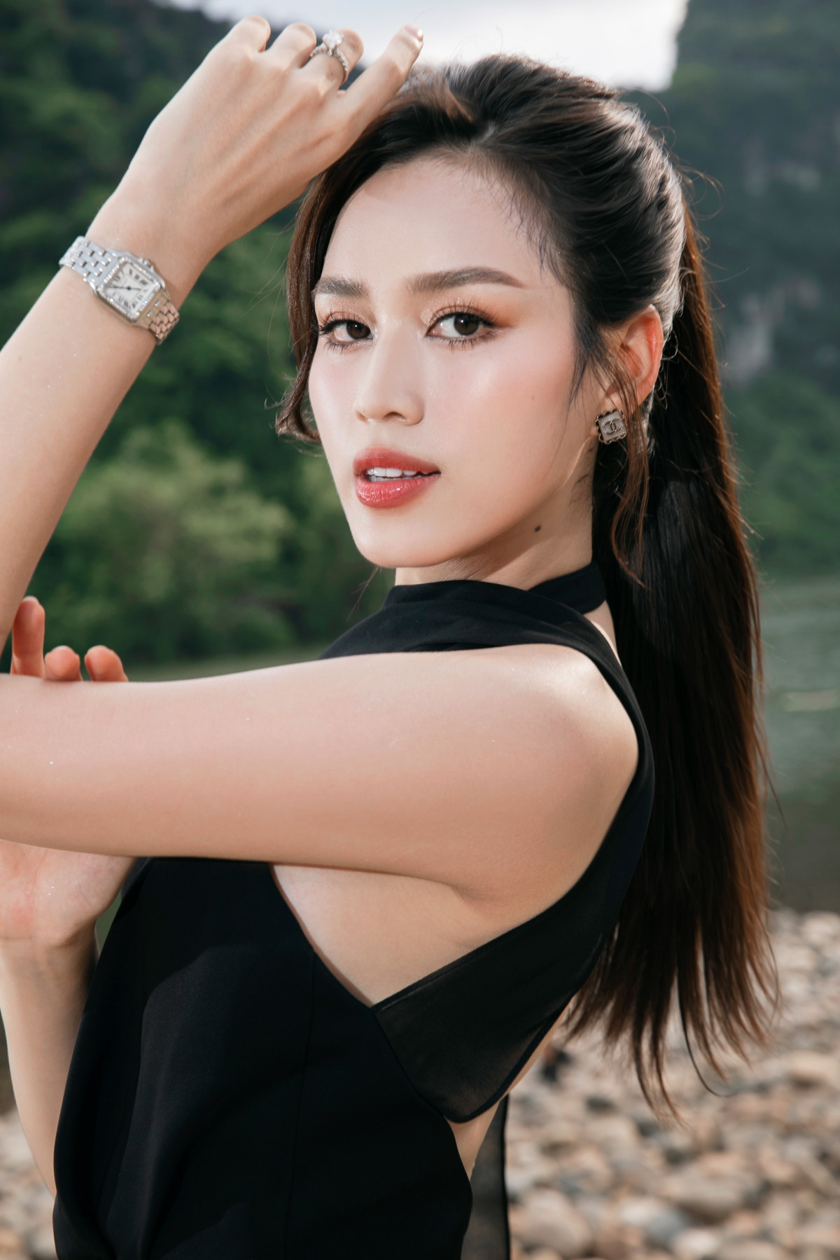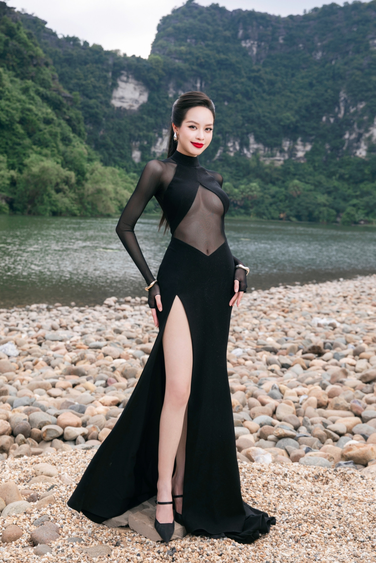 Đương kim Hoa hậu Việt Nam Huỳnh Thị Thanh Thủy cũng xuất hiện với thiết kế dạ hội tông màu đen xuyên thấu cắt xẻ táo bạo. Nhan sắc của Hoa hậu Việt Nam 2022 được nhận xét là đang ở thời kỳ đỉnh cao, có khả năng mang thành tích bất ngờ về cho nhan sắc Việt khi tham dự Miss International 2024.