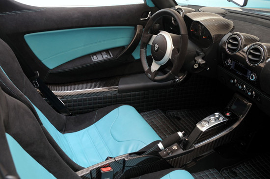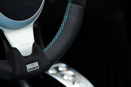 Bên trong xe có mặt những loạt da cao cấp được lựa chọn kỹ càng kết hợp với da Alcantara, thậm chí cả tấm lót sàn cũng được làm từ da, bên cạnh đó còn có sự xuất hiện logo Brabus mạ bạc.