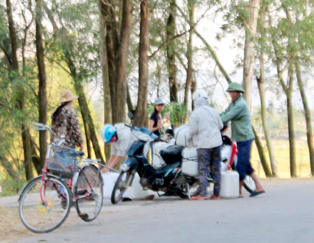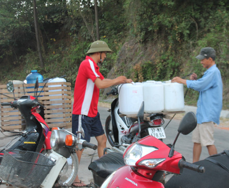 “Người trong xã thì mỗi can 20 lít phải trả 1.000 đồng, ngoài xã thì 3.000 - 5.000 đồng. Nếu mua cả can đựng nước thì 60.000 đồng/can, còn loại bình nước khoáng thì có giá 50.000 đồng”, ông Vinh cho biết.