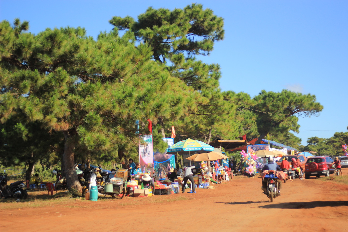 Bùi Thị Thận (47 tuổi, huyện Đắk Đoa, Gia Lai) cho biết, mỗi ngày chị bán được gần 200 ống cơm lam cho du khách. Chị Thận mua gạo nếp của người dân tộc Ba Na ở xã Glar để làm cơm lam. Chị khoe: "Tôi được dựng sạp miễn phí, tiền điện cũng được chính quyền hỗ trợ. Công an trực 24/24 ở khu vực này; tôi đã bán ở đây nhiều năm nhưng chưa thấy ai bị mất cái gì", chị Thận chia sẻ