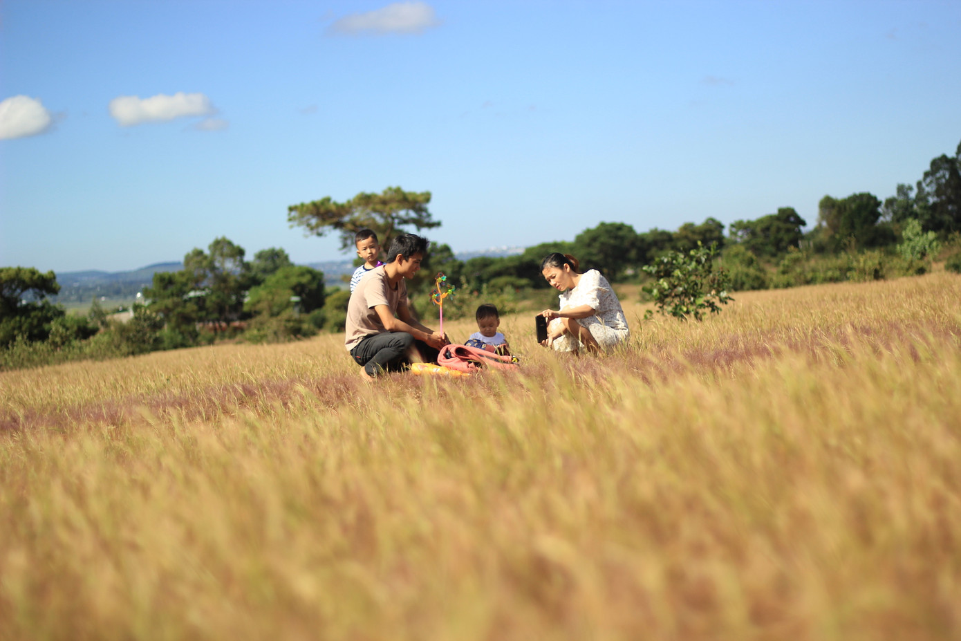 Các gia đình thường dẫn con tới đồi cỏ hồng để tận hưởng không khí trong lành
