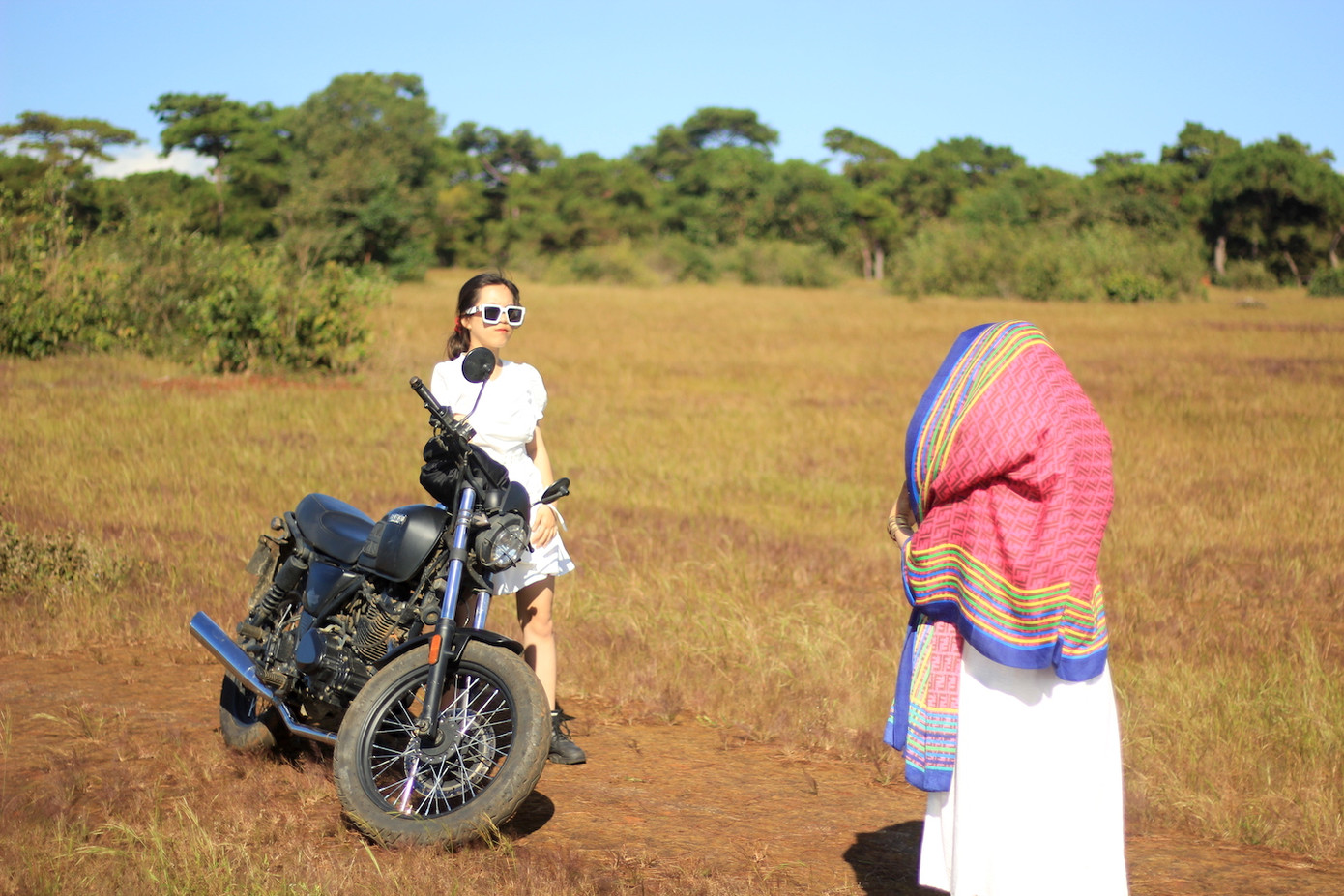 Hai khách du dịch từ Đắk Lắc vượt gần 200km sang Gia Lai để chụp ảnh với đồi cỏ hồng