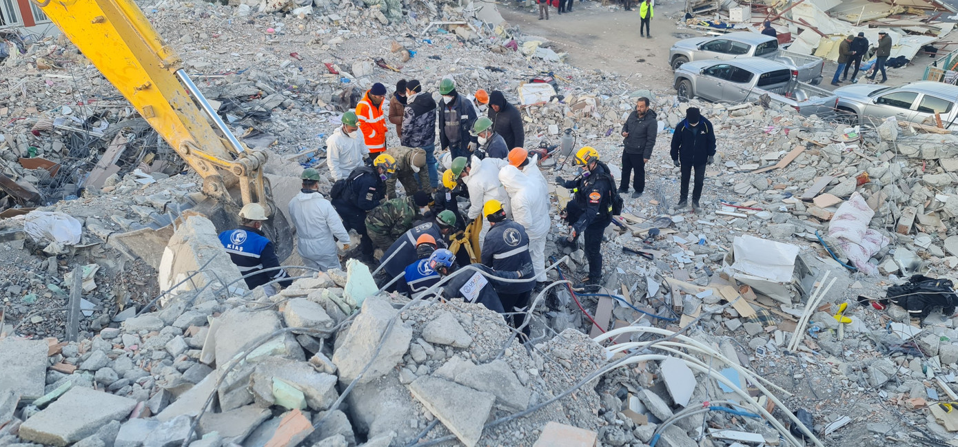 Tại đây đoàn phối hợp với đoàn cứu hộ của Mỹ và quân đội Thổ nhĩ kỳ sử dụng máy xúc, các thiết bị cắt sắt, phá bê tông để tìm kiếm.