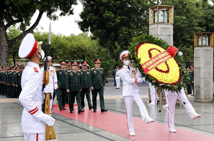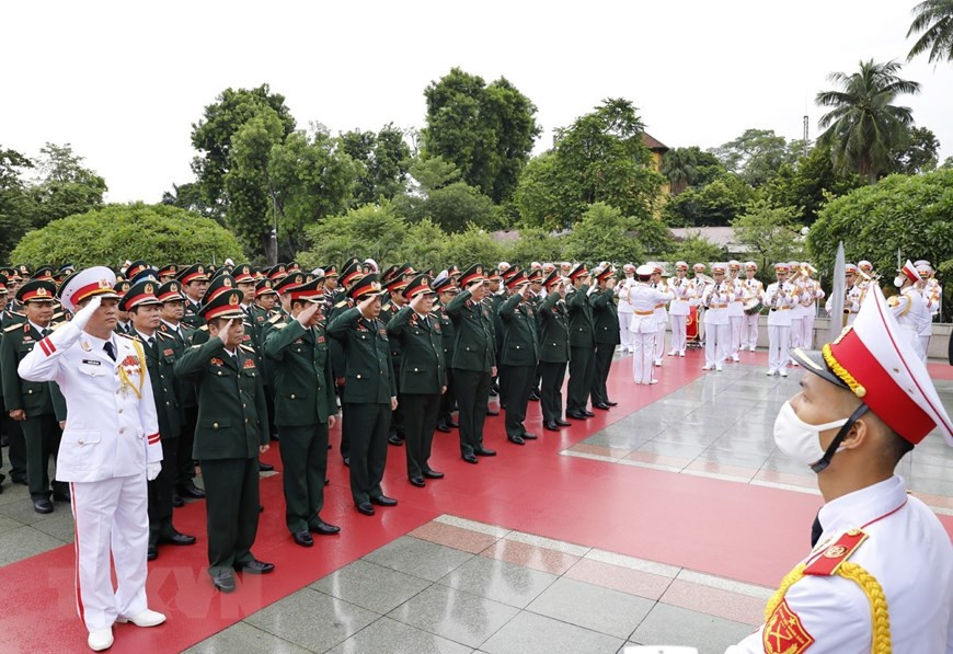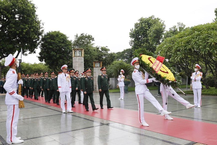 Sáng 27/9, tại Hà Nội, Đoàn đại biểu dự Đại hội đại biểu Đảng bộ Quân đội lần thứ XI, nhiệm kỳ 2020-2025 do Đại tướng Ngô Xuân lịch, Ủy viên Bộ Chính trị, Phó Bí thư Quân ủy Trung ương, Bộ trưởng Bộ Quốc phòng dẫn đầu đến đặt vòng hoa và vào Lăng viếng Chủ tịch Hồ Chí Minh. (Ảnh: Dương Giang/TTXVN)