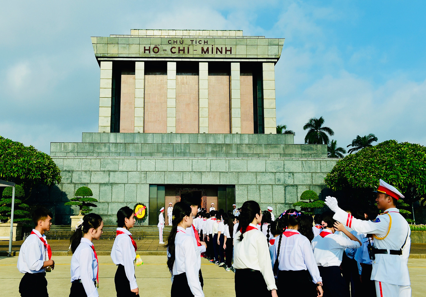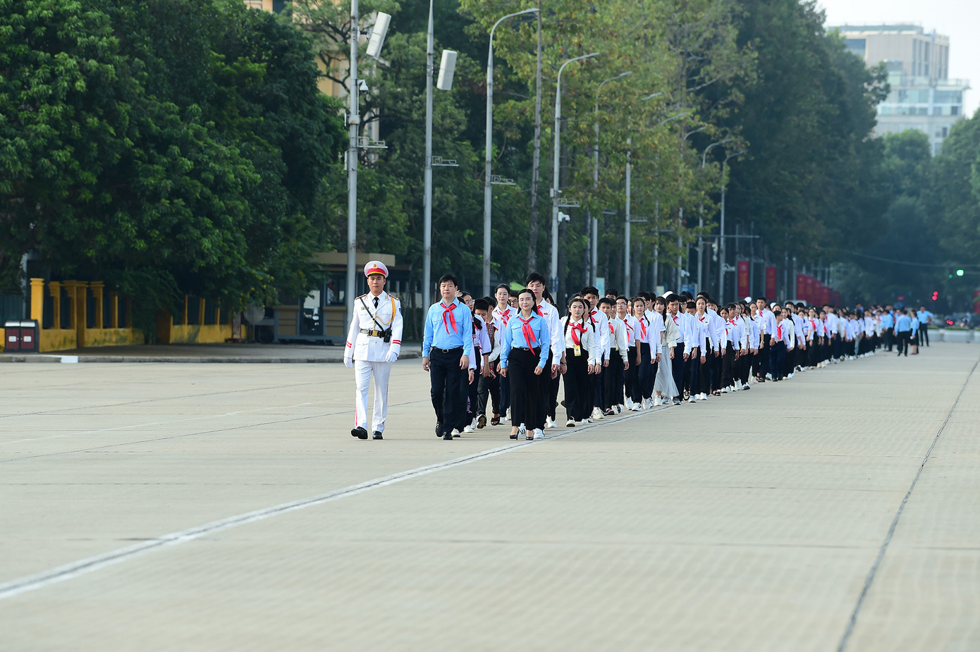 | Đoàn đại biểu tề tựu tại Quảng trường Ba Đình, vào viếng Lăng Chủ tịch Hồ Chí Minh. |