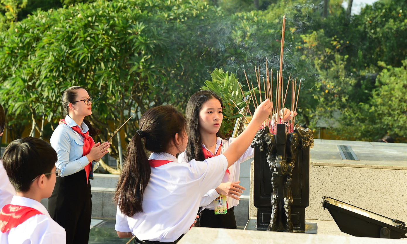 | Đoàn đại biểu Phiên họp giả định "Quốc hội trẻ em" lần thứ II, năm 2024 dâng hương và hoa tại Đài tưởng niệm các Anh hùng Liệt sĩ Bắc Sơn. |