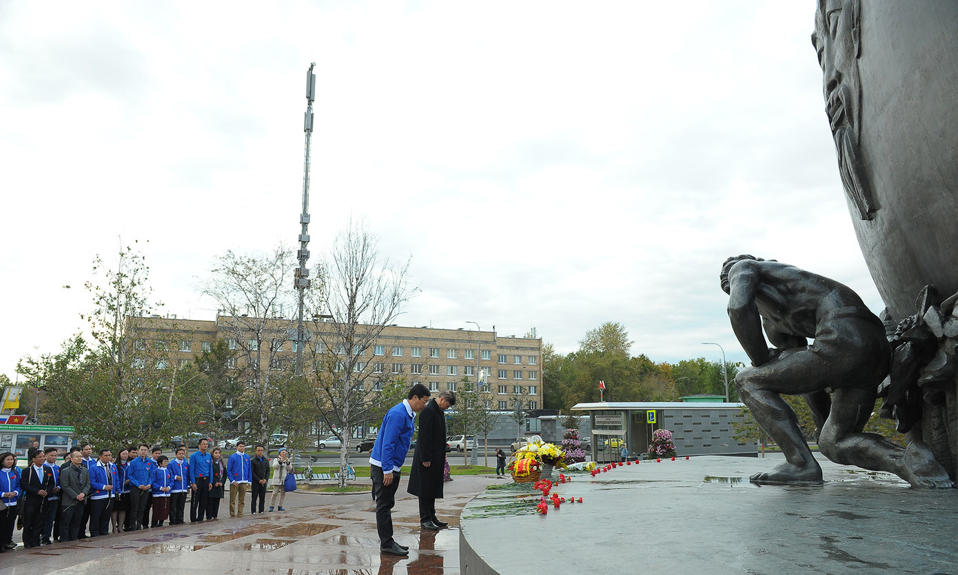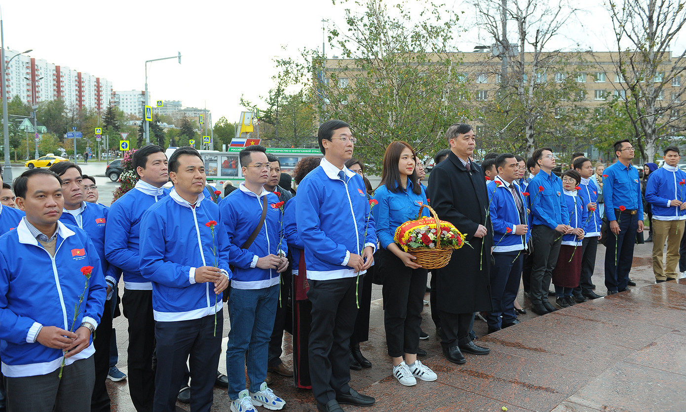 Trong không khí trang nghiêm, các đại biểu tham dự lễ dâng hoa đã dành một phút mặc niệm, tưởng nhớ Chủ tịch Hồ Chí Minh - nhà lãnh đạo lỗi lạc của Đảng Cộng sản Việt Nam và phong trào cộng sản thế giới, anh hùng giải phóng dân tộc, danh nhân văn hoá thế giới; người đã đặt nền móng cho mối quan hệ hữu nghị truyền thống giữa hai nước Việt Nam và LB Nga.