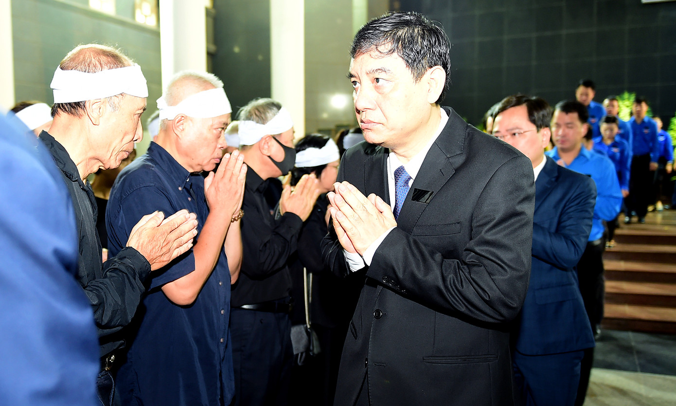 | Các đồng chí nguyên Bí thư thứ nhất T.Ư Đoàn chia buồn cùng gia quyến của Thiếu tướng Đặng Quốc Bảo. |