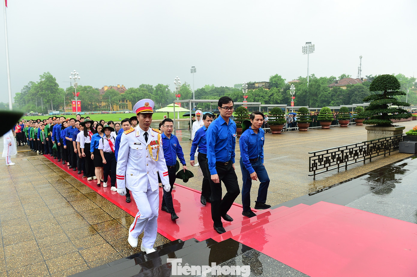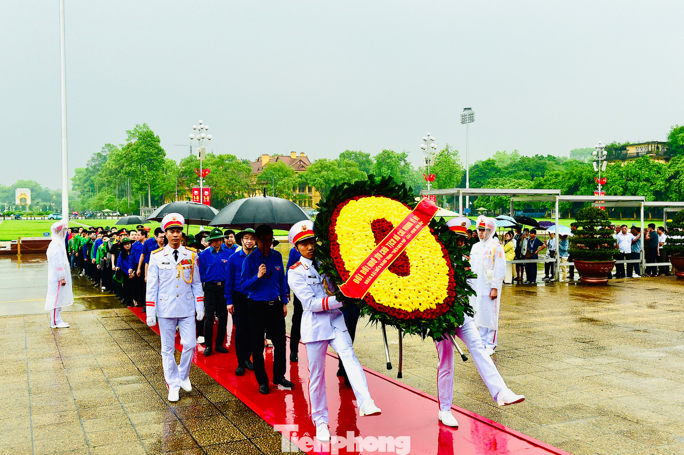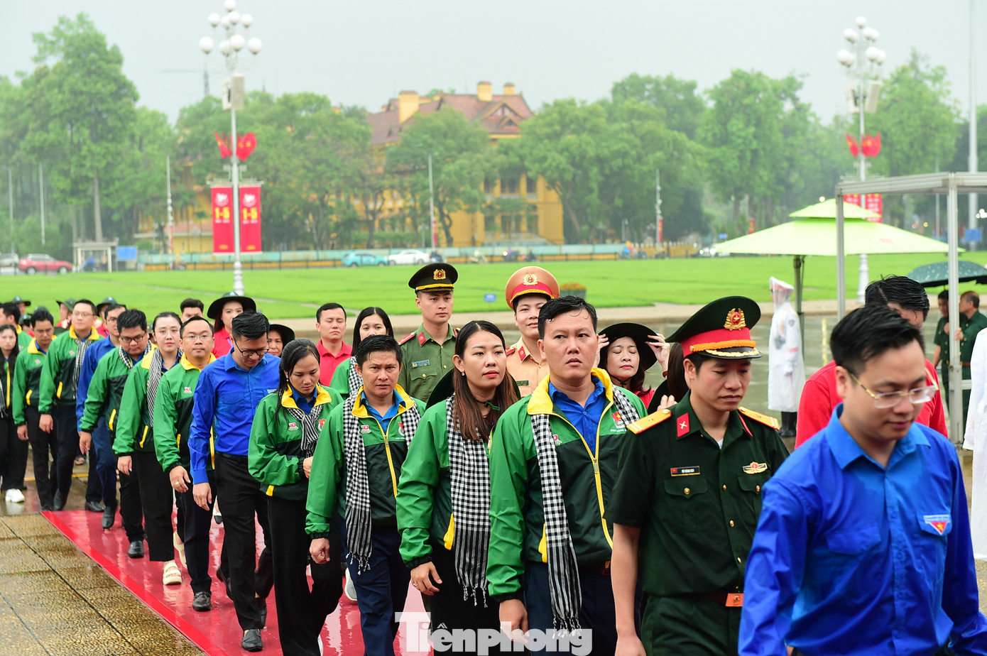 Ngay từ sáng sớm, đoàn đại biểu tham gia hành trình với trang phục áo xanh thanh niên, áo cờ đỏ sao vàng và trang phục truyền thống của các lực lượng vũ trang nhân dân đã tề tựu tại quảng trường Ba Đình lịch sử. Đoàn đã trang nghiêm, thành kính đặt vòng hoa mang dòng chữ “Đời đời nhớ ơn Chủ tịch Hồ Chí Minh vĩ đại” và vào lăng viếng Người.