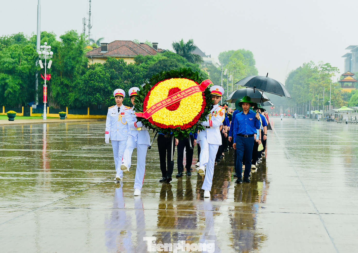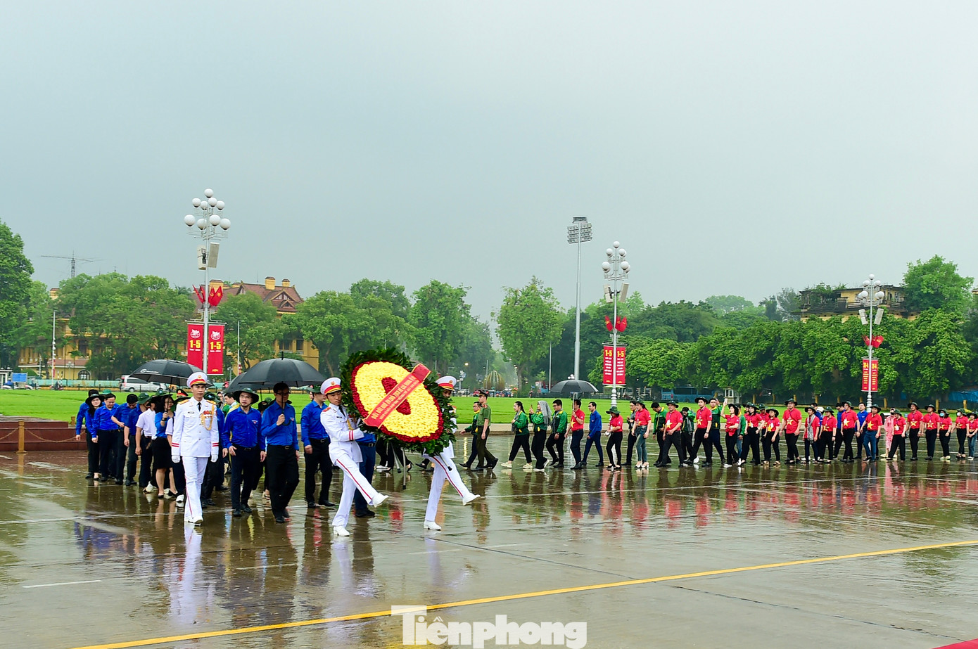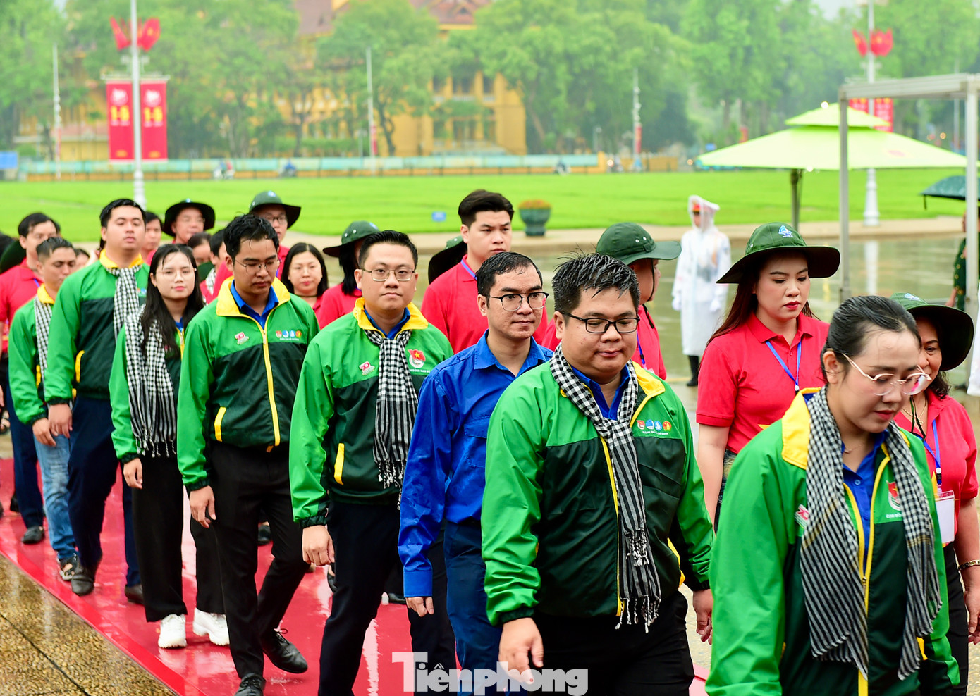 Ngay từ sáng sớm, đoàn đại biểu tham gia hành trình với trang phục áo xanh thanh niên, áo cờ đỏ sao vàng và trang phục truyền thống của các lực lượng vũ trang nhân dân đã tề tựu tại quảng trường Ba Đình lịch sử. Đoàn đã trang nghiêm, thành kính đặt vòng hoa mang dòng chữ “Đời đời nhớ ơn Chủ tịch Hồ Chí Minh vĩ đại” và vào lăng viếng Người.