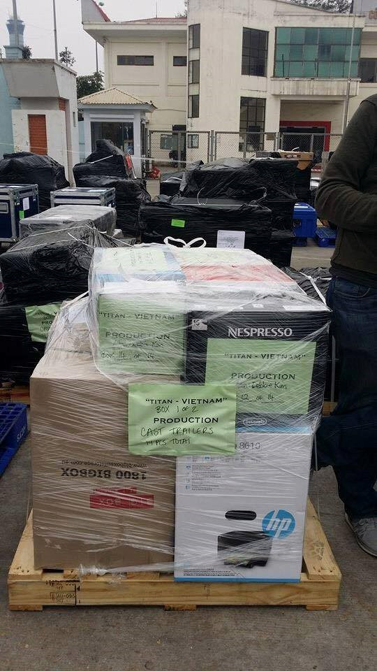 Số trang thiết bị này sẽ được sớm vận chuyển đến trường quay của bộ phim Kong: Skull Island tại tỉnh Ninh Bình. Đoàn phim đã khảo sát, dựng phim trường để thực hiện các cảnh quay tại đây.