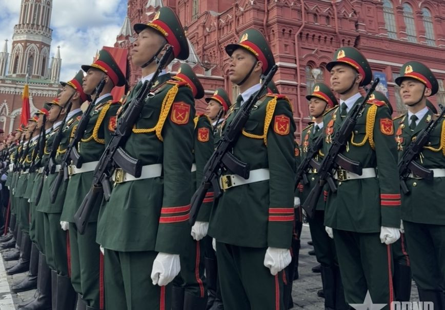 | Đoàn Quân đội Nhân dân Việt Nam diễu hành ở vị trí thứ 8 trong khối lực lượng quốc tế, trước các đoàn Trung Quốc, Lào và Myanmar. |