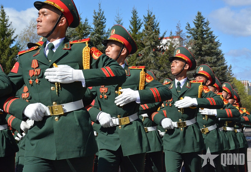 Đoàn Quân đội Nhân dân Việt Nam diễu hành ở vị trí thứ 8 trong khối lực lượng quốc tế, trước các đoàn Trung Quốc, Lào và Myanmar.