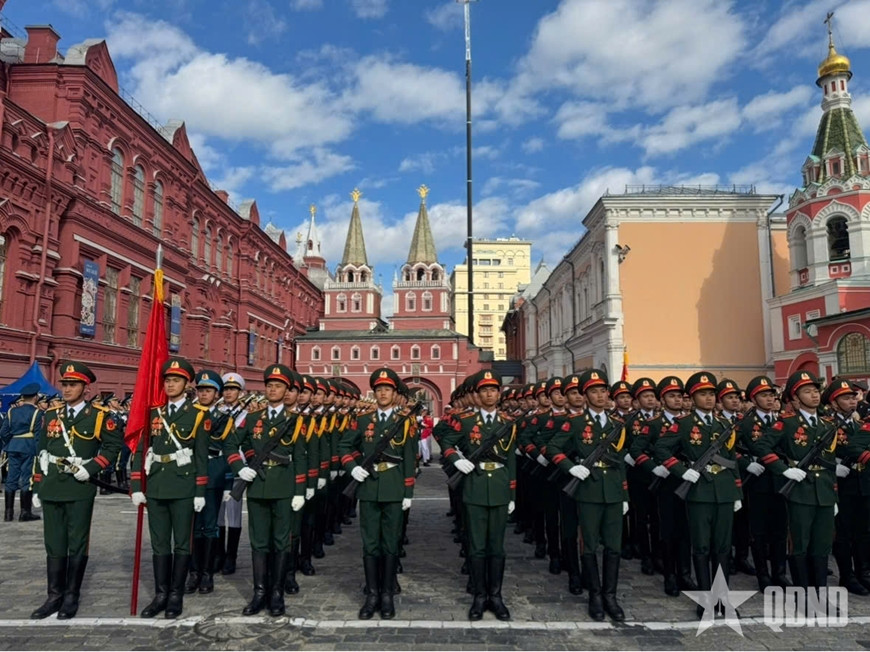 Đúng 10h (giờ Mátxcơva, tức 14h, giờ Hà Nội), chuông đồng hồ trên Quảng trường Đỏ ngân vang, báo hiệu lễ duyệt binh kỷ niệm 80 năm Ngày Chiến thắng phát xít bắt đầu.