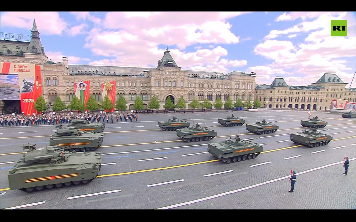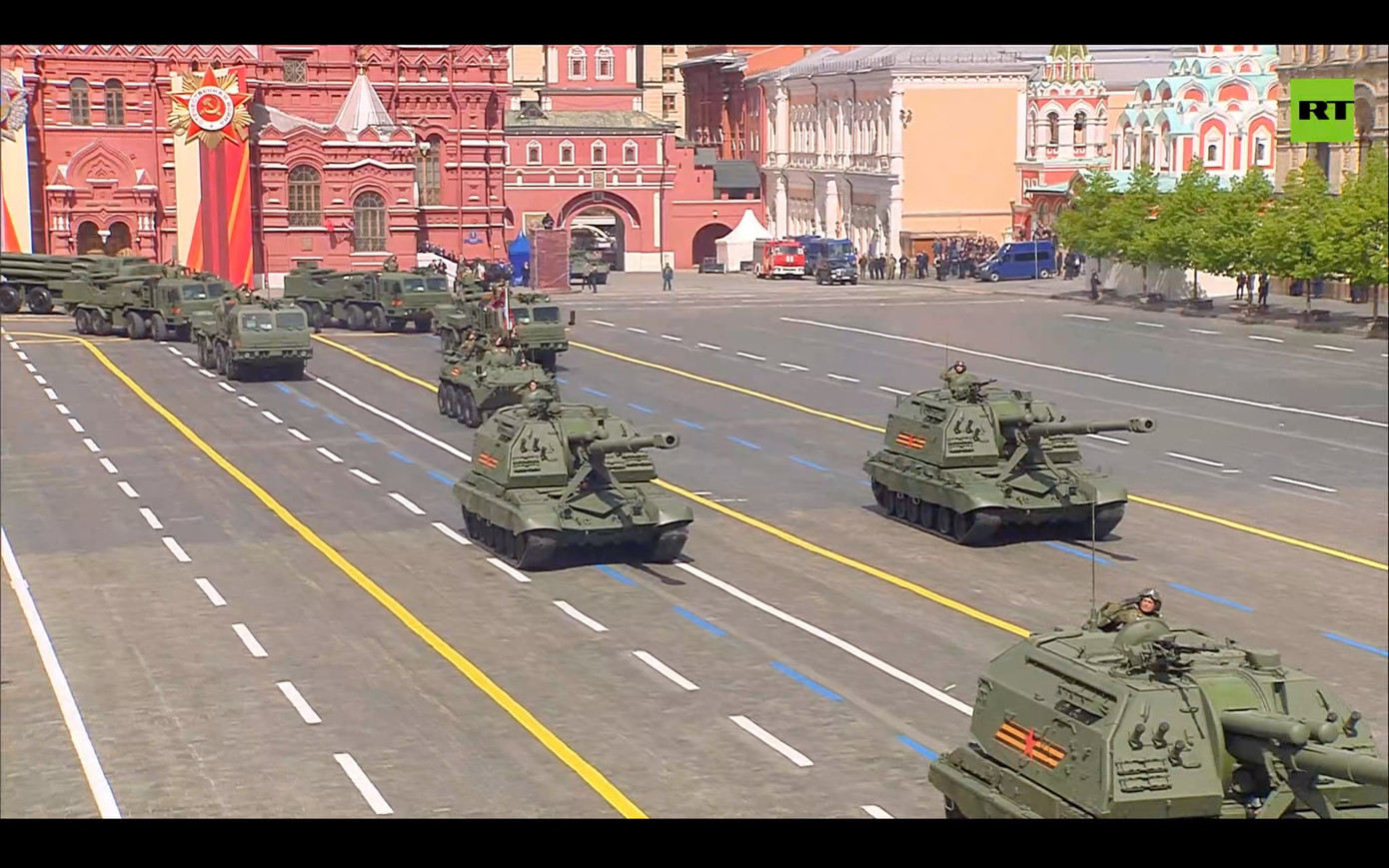 Tiếp đó là 6 cường kích Su-25BM xả khói màu, tạo thành quốc kỳ Nga trên bầu trời Quảng trường Đỏ, kết thúc Lễ duyệt binh Ngày Chiến thắng.