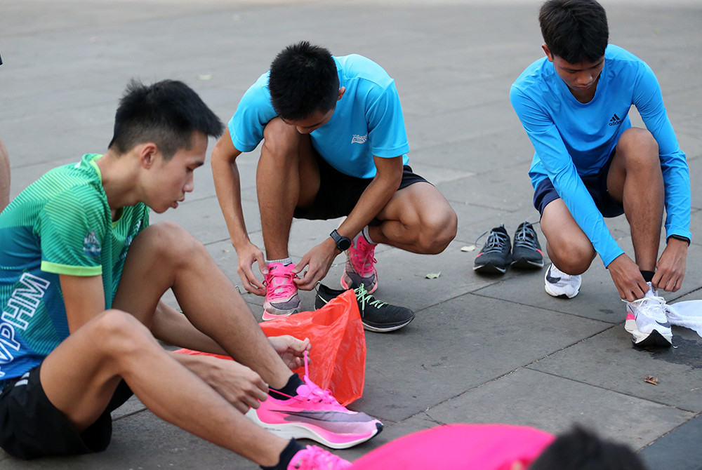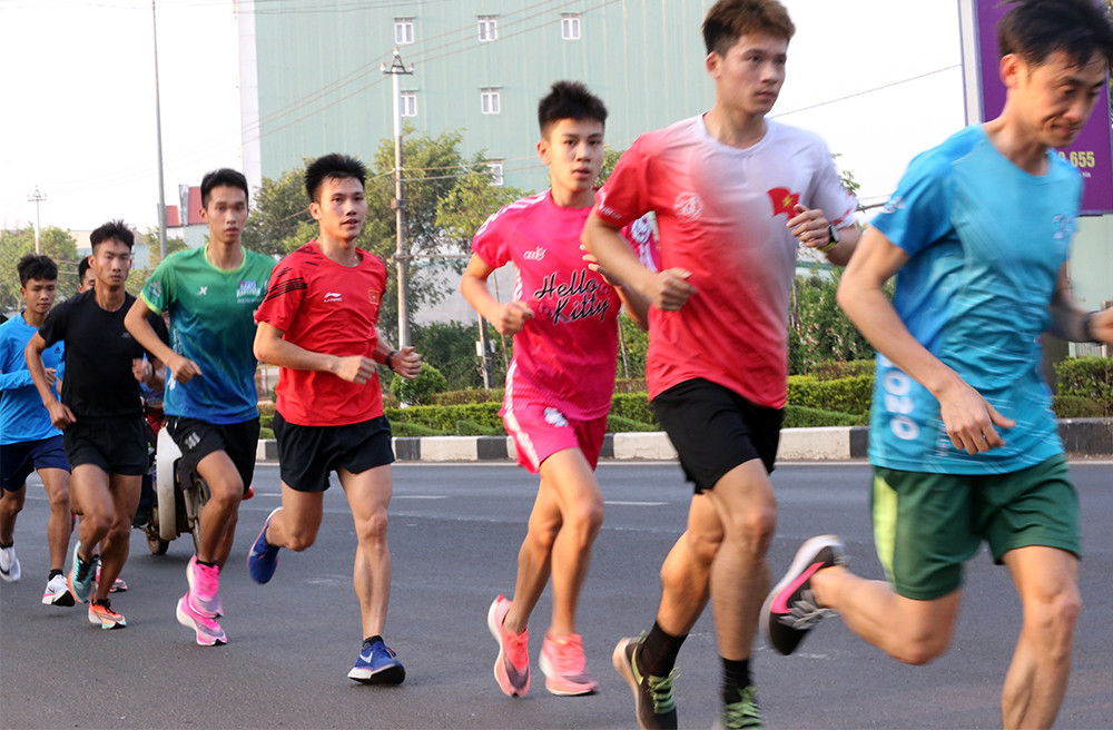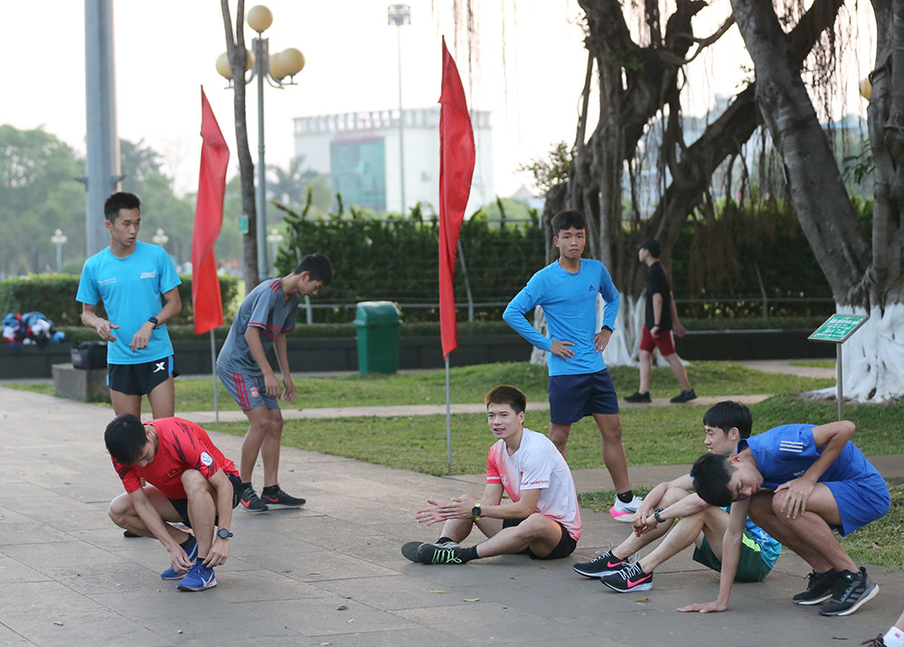 Các VĐV đoàn Quân đội hăng say tập luyện với sựu giám sát chặt chẽ của HLV Nguyễn Tuấn Viết. Bên cạnh hướng dẫn chuyên môn, HLV đoàn Quân đội "giữ nhiệm vụ tiếp nước" trên đường chạy cho các học trò.