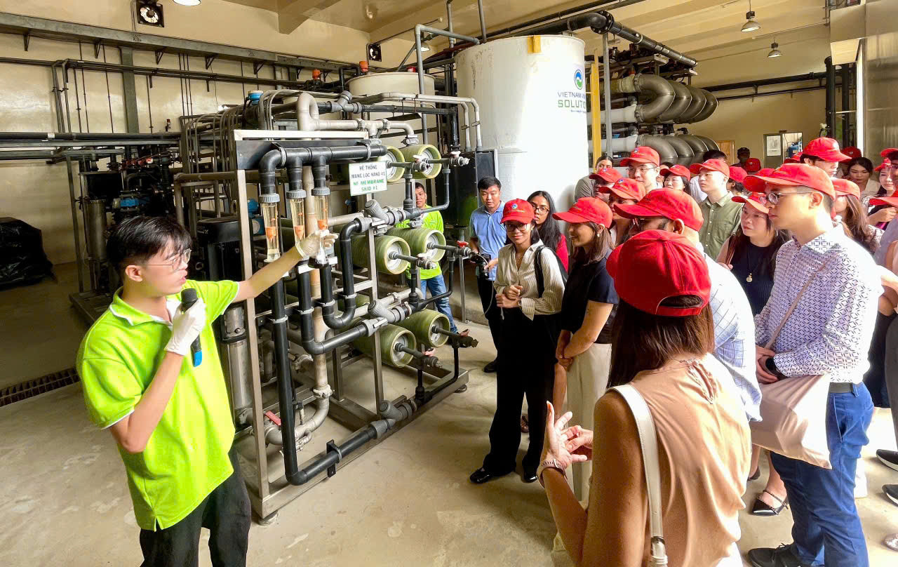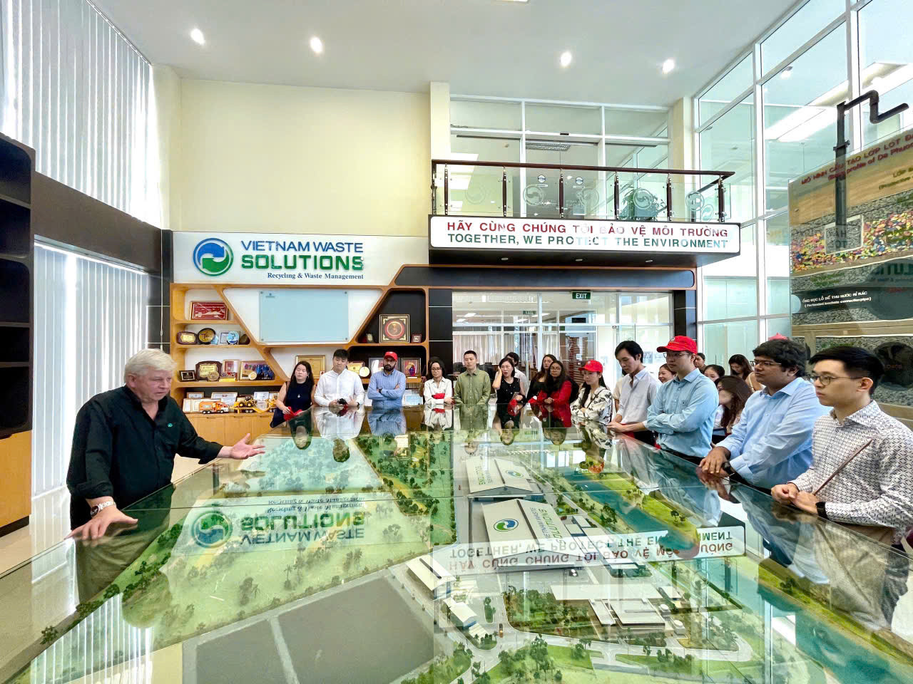 Sau đó, đoàn sinh viên đi tham quan, tìm hiểu thực tế về các quy trình xử lý chất thải, nước rỉ rác, công nghệ biến rác thành điện tại Công ty VWS.