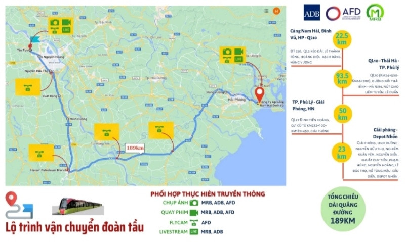 Hành trình đoàn xe siêu trường siêu trọng vận chuyển đoàn tàu đầu tiên của tuyến đường sắt đô thị số 3, đoạn Nhổn - ga Hà Nội. Các tuyến đường di chuyển là QL10 – QL1 cũ, trung tâm Hà Nội.