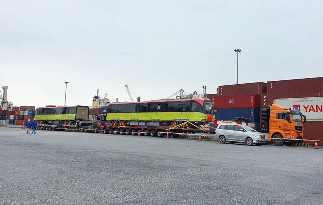 Sau gần 2 ngày cập cảng ở Hải Phòng và sau đó được vận chuyển bằng đường bộ, sáng sớm nay, đoàn tàu đầu tiên của tuyến đường sắt đô thị số 3, đoạn Nhổn – ga Hà Nội, đã có mặt tại Hà Nội.