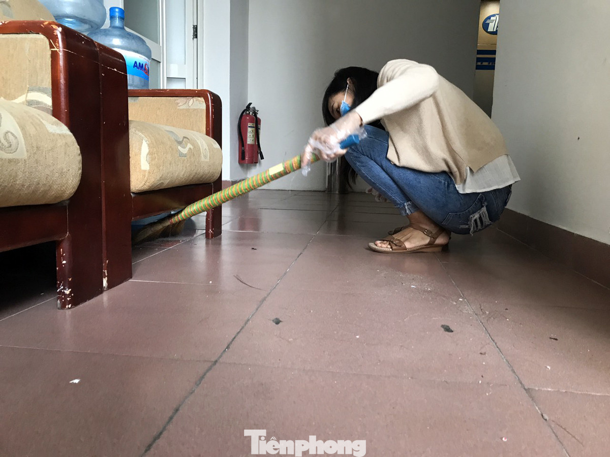 Bên cạnh vệ sinh quét dọn các lối hành lang thoát hiểm, khuôn viên 9 tầng cơ quan...
