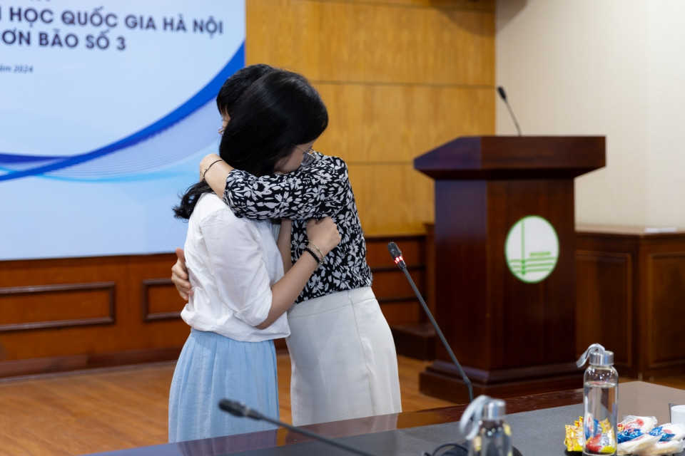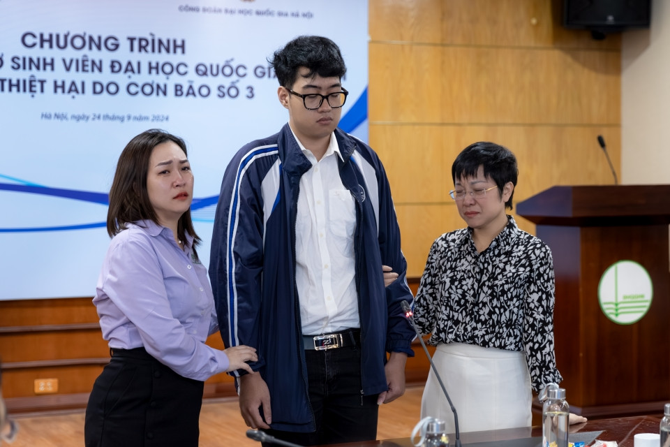 Thay mặt cho Ban Chấp hành Đoàn Đại học Quốc gia Hà Nội, Bí thư Đoàn Thanh niên Đại học Quốc gia Hà Nội Hứa Thanh Hoa chia sẻ sự xúc động khi nhận được gần 570 lượt ủng hộ của các tổ chức, cá nhân qua lời kêu gọi của Đoàn Thanh niên, Hội Sinh viên để ủng hộ nhân dân và sinh viên chịu ảnh hưởng của cơn bão số 3, trong đó, có cả những bạn sinh viên chỉ còn rất ít tiền để sinh hoạt nhưng quyết định dùng toàn bộ số tiền đang có để ủng hộ.