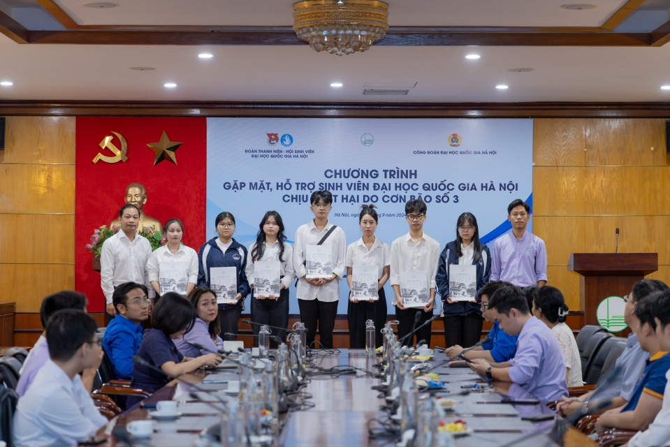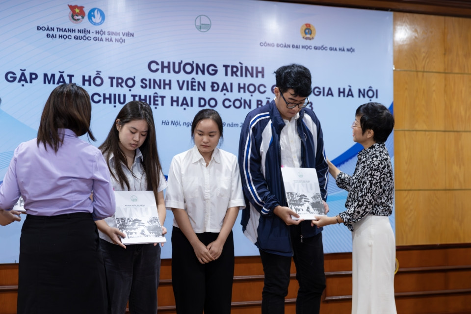 Với tinh thần “tương thân, tương ái, lá lành đùm lá rách”, đồng thời nhằm kịp thời động viên, hỗ trợ, chia sẻ khó khăn cùng gia đình các sinh viên bị ảnh hưởng nặng nề của mưa bão, Công đoàn Đại học Quốc gia Hà Nội và Đoàn Thanh niên - Hội Sinh viên quyết định trích 860 triệu đồng thu được sau đợt quyên góp, ủng hộ bởi công đoàn viên, người lao động, phụ huynh, học sinh, sinh viên Đại học Quốc gia Hà Nội.