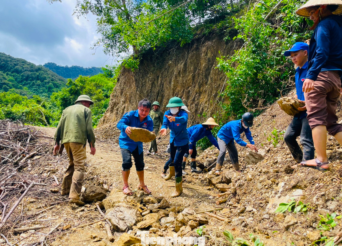 | "Tuyến đường này dài 3km, các đoàn viên và mọi người phải lội bộ vào sửa đường. Dọc đường gặp điểm nào hư hỏng, các đoàn viên dừng lại sửa, đảm bảo xe có thể lưu thông qua. Có nhiều điểm đất đá sạt xuống vùi lấp cả một đoạn dài. Lượng đất đá sạt lở nhiều nên rất khó nhọc mới làm được", chị Lô Thị Lan - Bí thư Đoàn thị trấn Thạch Giám (huyện Tương Dương) nói. |