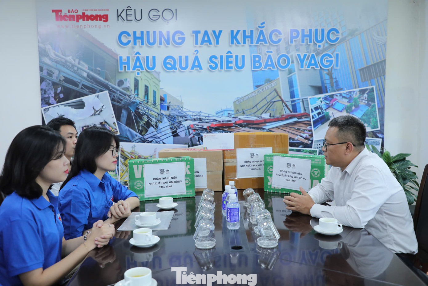 Hưởng ứng chương trình Chung tay khắc phục hậu quả bão Yagi do báo Tiền Phong phát động, sáng 17/9, Chi Đoàn Nhà xuất bản Kim Đồng đã đến báo Tiền Phong ủng hộ số tiền 3 triệu đồng và 4 thùng nhu yếu phẩm bao gồm bánh, sữa.