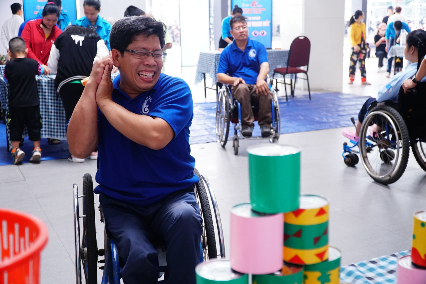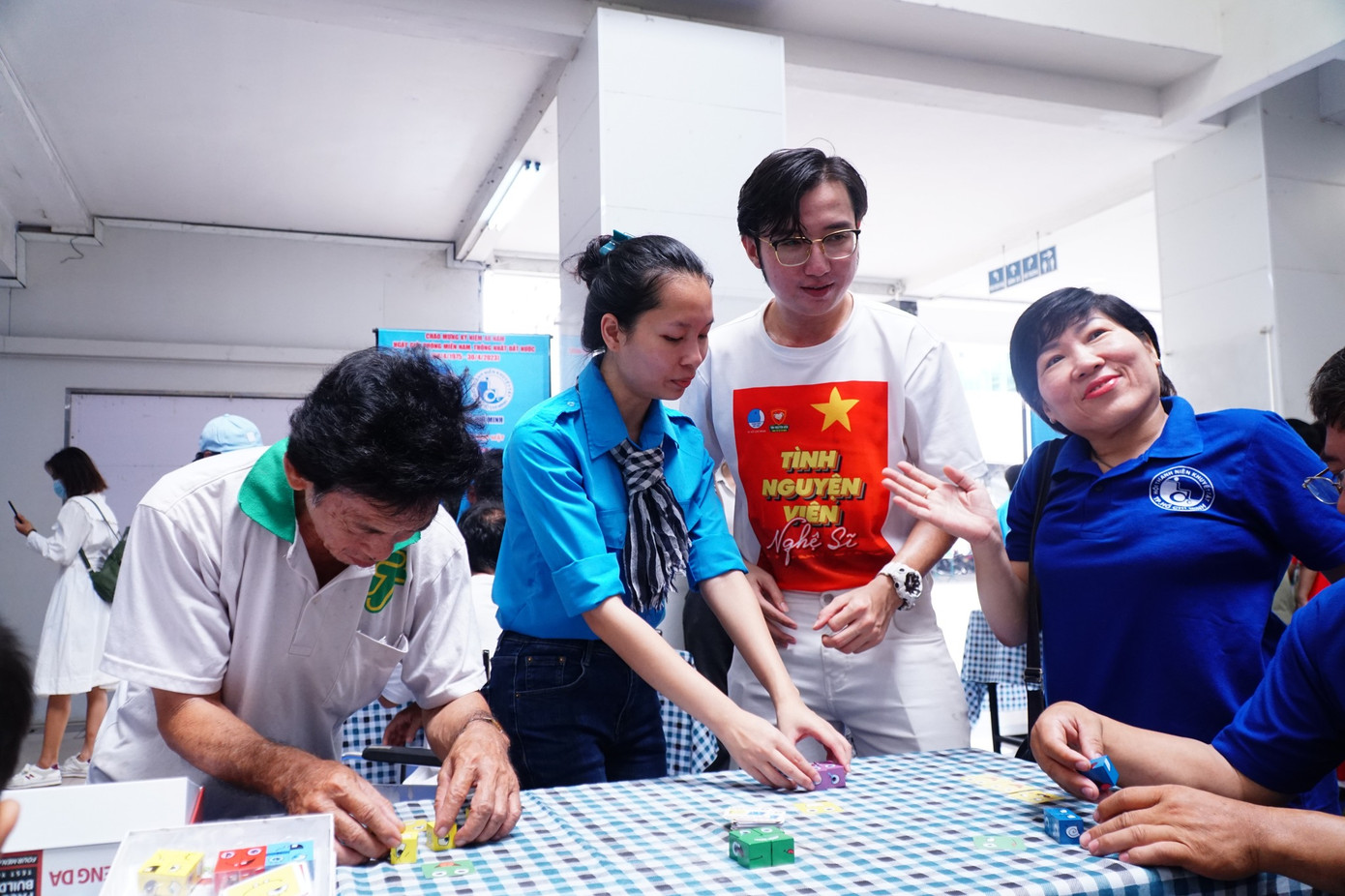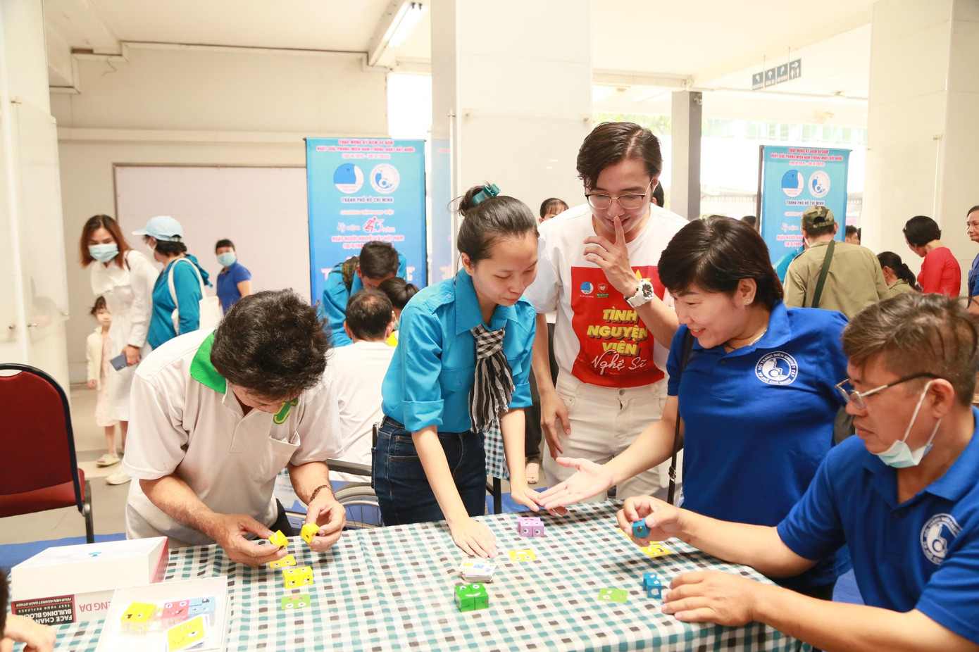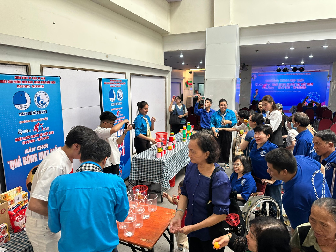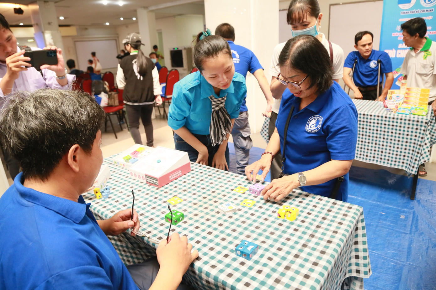Kết thúc phần lễ, các anh, chị hội viên, thanh niên thành phố cùng các anh, chị đội viên Đội Tình nguyện viên Nghệ sĩ TP. HCM tham gia các sân chơi với nhiều hình thức đa dạng nằm trong khuôn khổ chương trình Họp mặt kỷ niệm 43 năm Ngày người khuyết tật Việt Nam (18/4) như xếp tháp ly, phá đảo tháp lon, nhanh tay nhanh mắt, trò chơi cảm xúc...