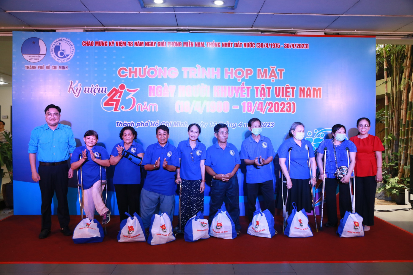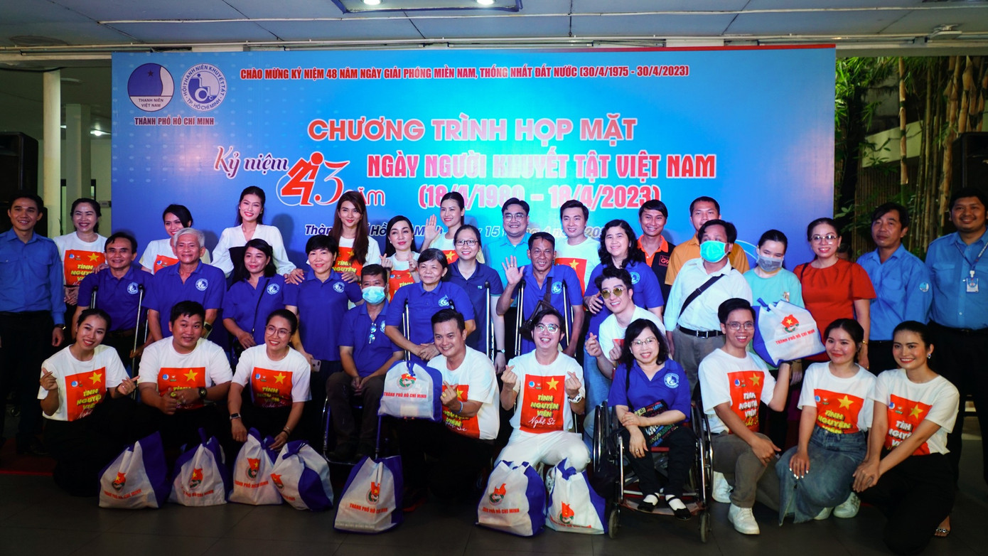 SVO - Sáng ngày 15/4, tại khuôn viên sảnh Nhà Văn hóa Thanh niên TP. HCM, đã diễn ra Chương trình họp mặt kỷ niệm 43 năm Ngày Người khuyết tật Việt Nam (18/4). Chương trình được Hội LHTN TP. HCM và Hội Thanh niên Khuyết tật TP. HCM thực hiện, với sự hiện diện của gần 100 hội viên, thanh niên khuyết tật trên địa bàn TP. HCM và hơn 25 đội viên thuộc Đội Tình nguyện viên Nghệ sĩ TP. HCM.