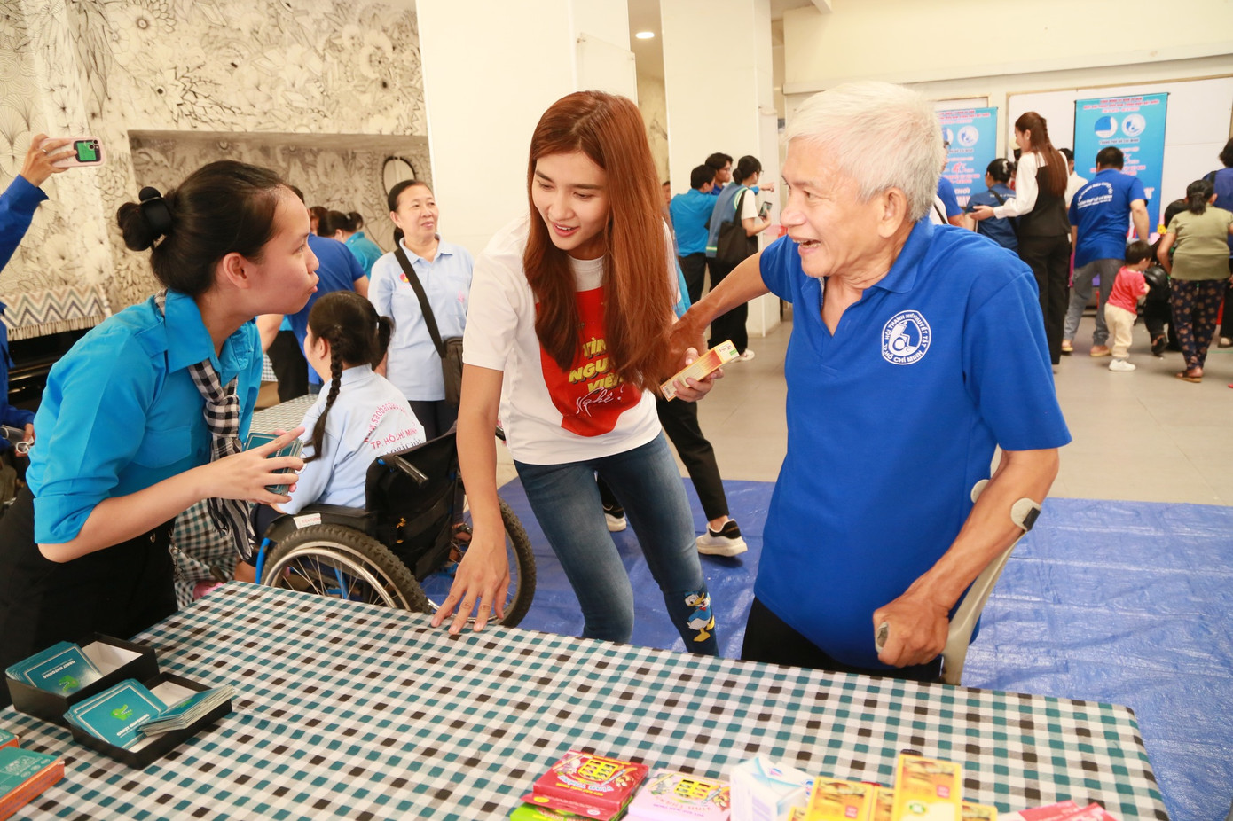 Trong bầu không khí vui tươi của buổi họp mặt, các cô, chú, anh, chị là hội viên, thanh niên khuyết tật trên địa bàn TP. HCM hào hứng khi được giao lưu, cũng như thưởng thức các tiết mục văn nghệ đến từ các đội viên Đội Tình nguyện viên Nghệ sĩ TP. HCM.