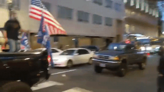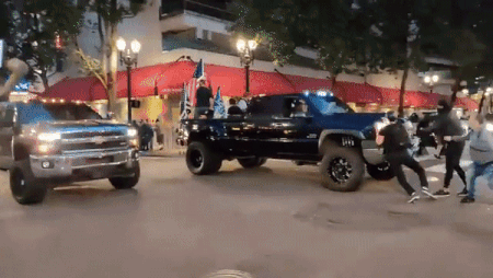 Theo RT, hàng trăm phương tiện gắn cờ Trump 2020 từ ngoại ô đã tiến vào thành phố Portland lúc 18h, nhưng lập tức “chạm mặt” đoàn người biểu tình.