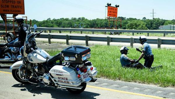 Phóng viên Jennifer Jacobs của hãng tin Bloomberg - người đang đi cùng ông Trump đến Louisiana - đã đăng trên tài khoản mạng xã hội những hình ảnh cho thấy một sĩ quan bên cạnh chiếc xe máy của anh này bị lật trên đường cao tốc. Theo cô, cô đã nhìn thấy ít nhất ba nhân viên cảnh sát bị thương.