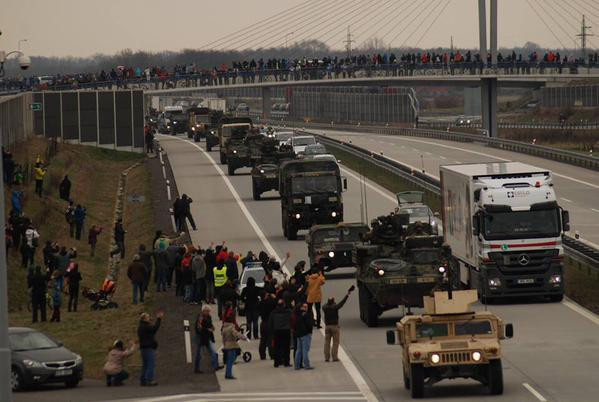 Ngày 29/3, đoàn xe bọc thép Mỹ tách thành ba đoàn xe nhỏ để tiến vào Cộng hòa Séc, tuy nhiên một đoàn đã phải chậm chân tới hàng giờ đồng hồ vì một trong những chiếc xe chiến đấu bộ binh Stryker bị "chết máy" ngay khi cách biên giới Séc 2km gần làng Jakuszyce của Ba Lan.