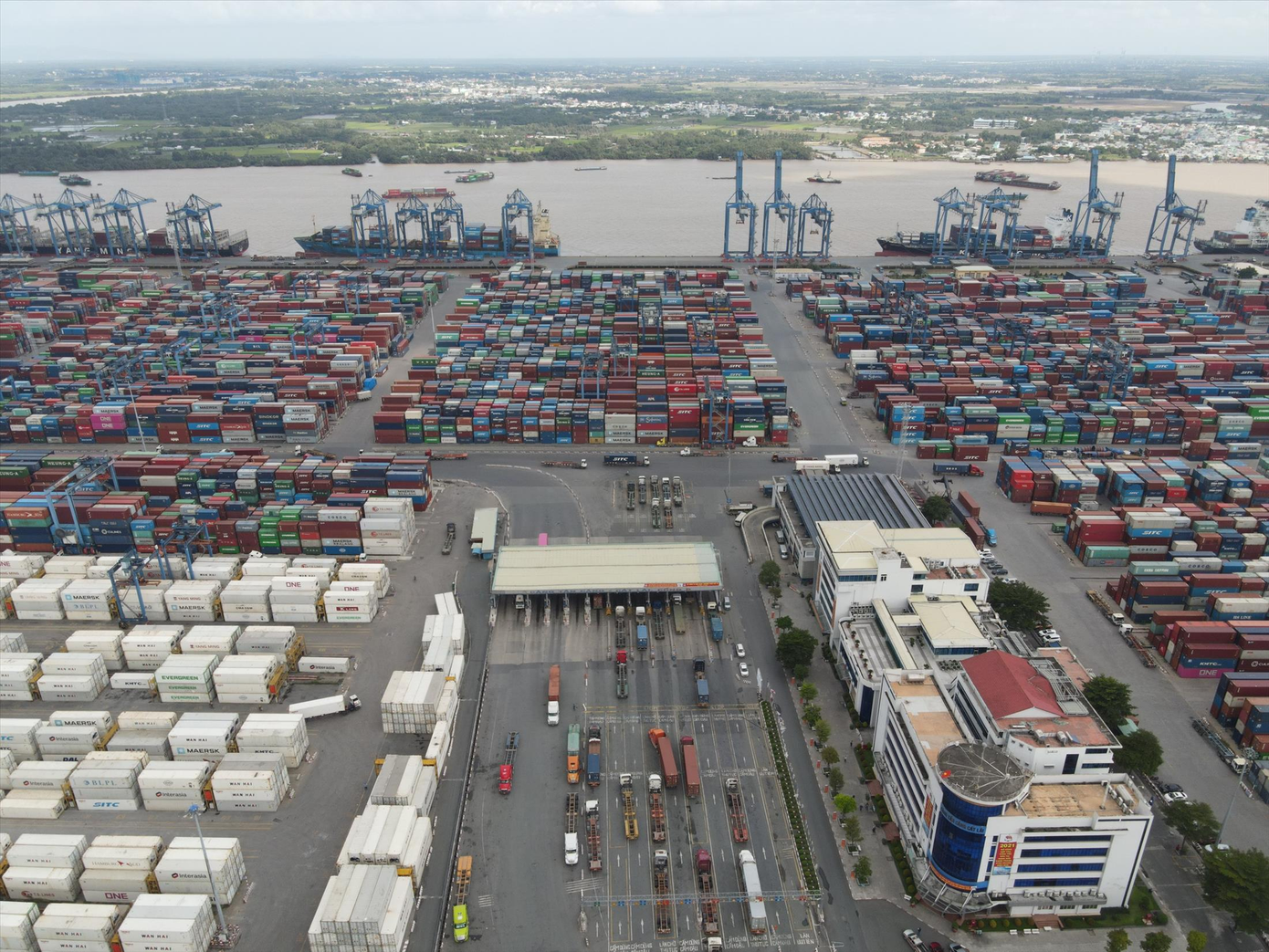 | Hoạt động vận tải hàng hóa bằng xe container tại cửa ngõ cảng Cát Lái (TP Thủ Đức) Ảnh: Phạm Nguyễn |