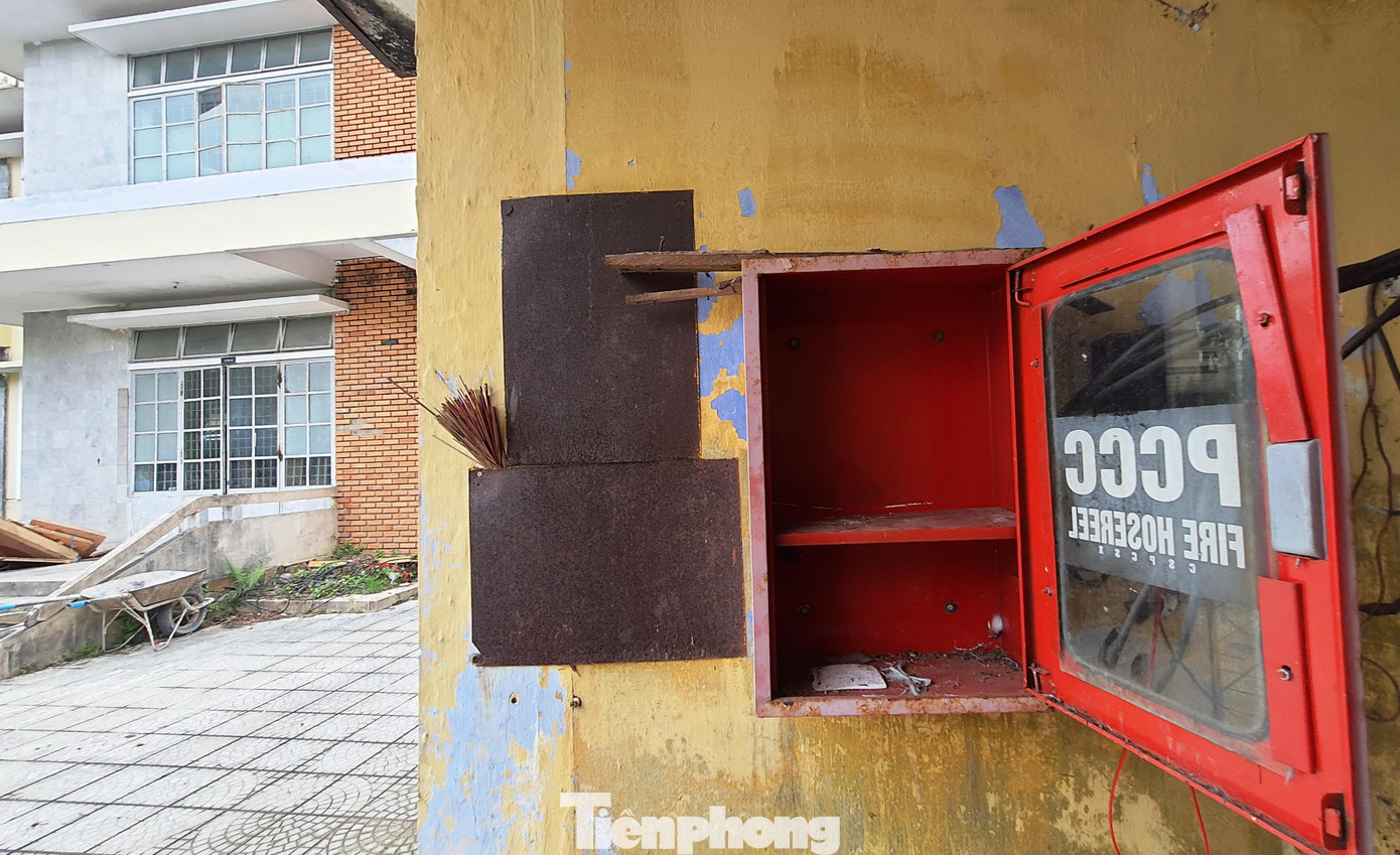 Ngoài ra, tại toàn bộ hai dãy nhà A và nhà B của cơ sở 3 Trường Cao đẳng Công nghiệp Huế, các hộp chữa cháy, bảng tiêu lệnh PCCC theo quy định đều trong tình trạng mục nát, gỉ sét, thậm chí không có bất kỳ bình khí phục vụ chữa cháy nào được bố trí bên trong.