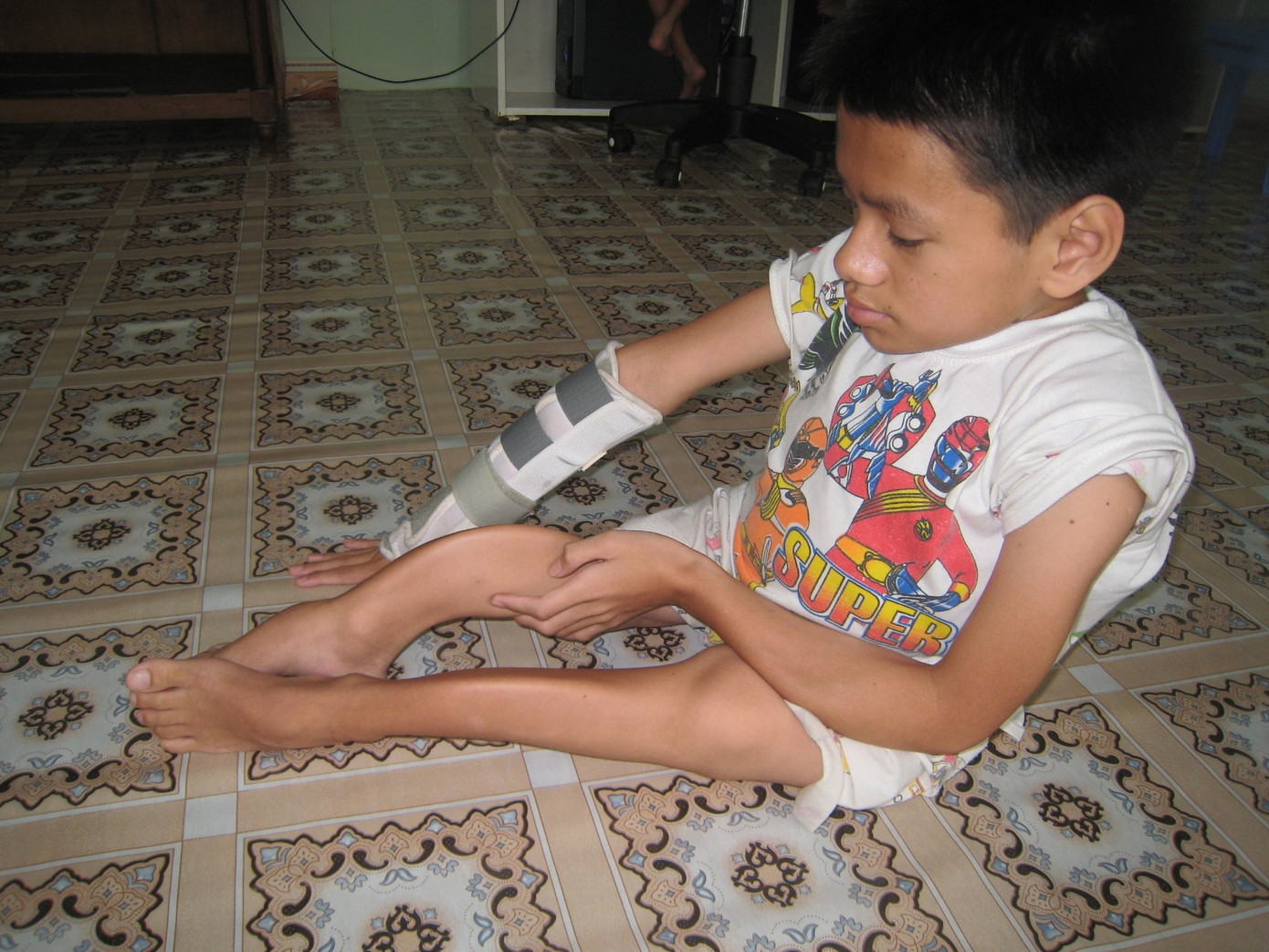 Từ khi lên 1 tuổi, Tiến được phát hiện bị bệnh xương thủy tinh. Chiếc chân cong queo là hệ quả bao lần gãy chân, bó bột của cậu.