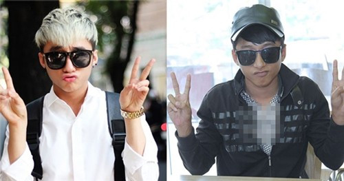 Chàng trai Võ Viễn Thiện (phải) cố tình biến mình thành bản sao của Sơn Tùng M-TP. Không chỉ nhái lại phong cách thời trang, anh còn bắt chước lại những điệu bộ, cử chỉ của giọng ca Nắng ấm xa dần. Ảnh: FBNV.