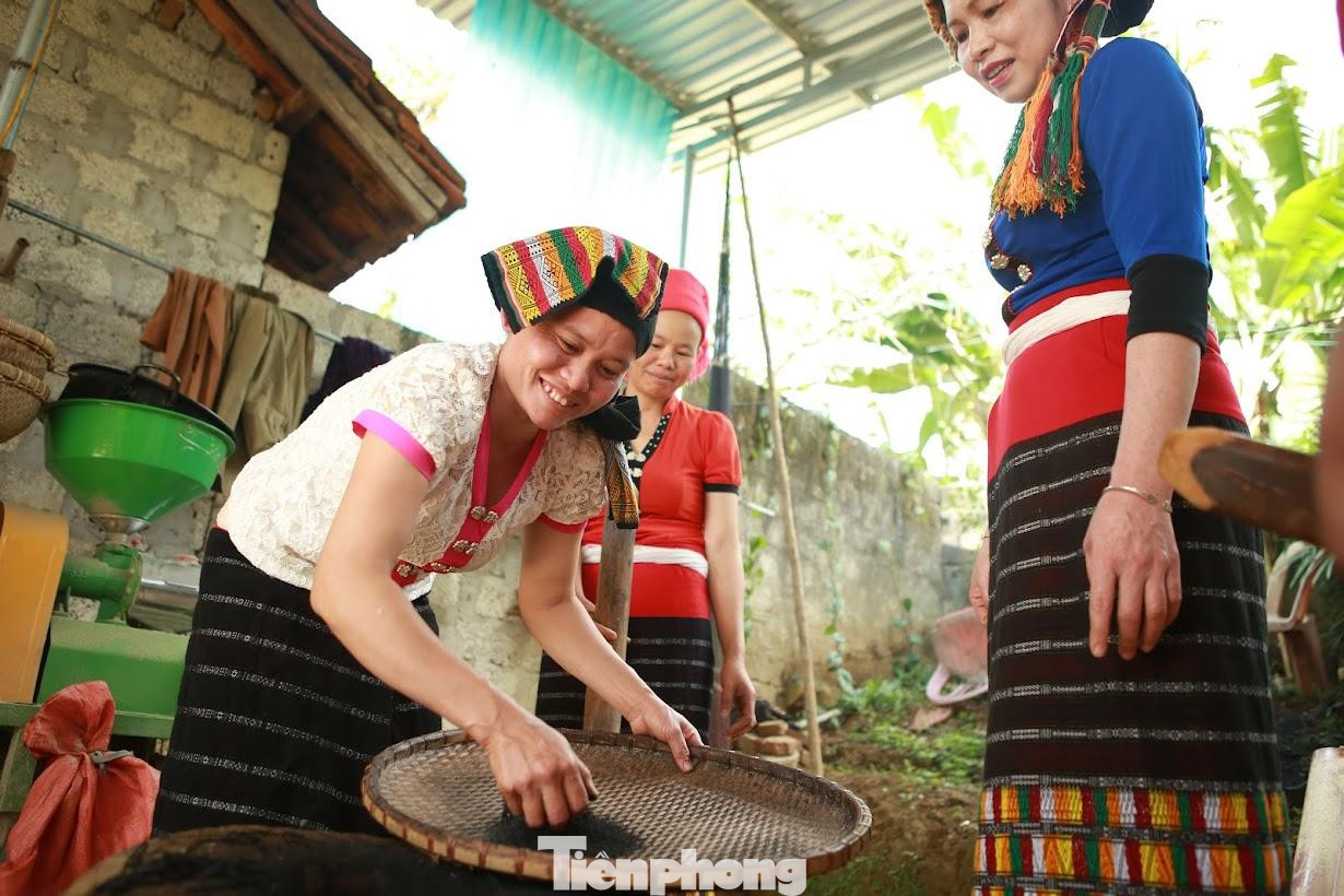 | Tro và gạo nếp được giã đều tay. Mọi công đoạn đều do các bàn tay người phụ nữ làm, tuyệt nhiên đàn ông không được động tay vào. |