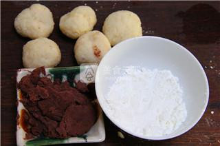 Cho sắn vào lò vi sóng quay 15 phút cho chín mềm, hoặc có thể hấp chín. Dùng dĩa xiên qua sắn, nếu thấy sắn tơi, bở thì bỏ ra ngoài. Tiếp đó, dầm nát sắn, trộn đều với dầu dừa và một chút bột ngô rồi cho vào lò vi sóng 5 phút, để nguội. Chia sắn thành 5 phần bằng nhau.