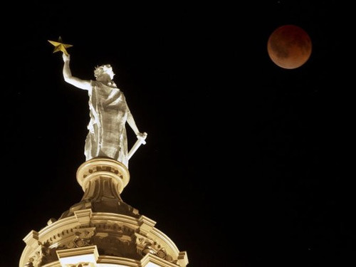 Mặt trăng trên đỉnh tượng Nữ Thần Tự Do ở Austin, Texas, Mỹ. Ảnh: Jay Janner/MCT