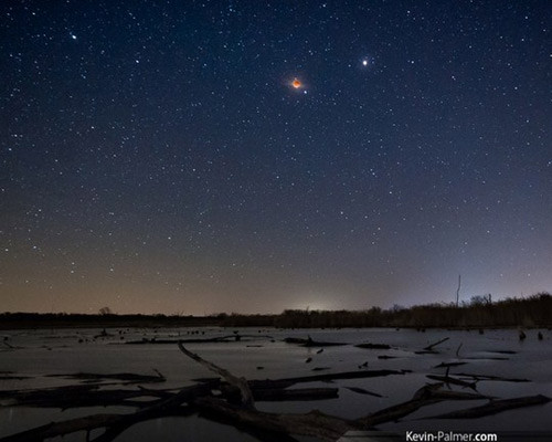 Trăng máu" như quả cầu lửa đỏ rực trên bầu trời đầy sao ở Illinois (Mỹ) do nhiếp ảnh gia Kevin Palmer chụp. Ảnh: Space.com