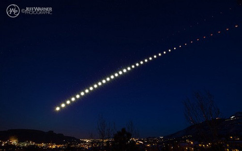 Nhiếp ảnh gia thiên văn Jeff Warner chụp hình ảnh liên hoàn của trăng máu trông như vệt sao băng. Ảnh: Space.com